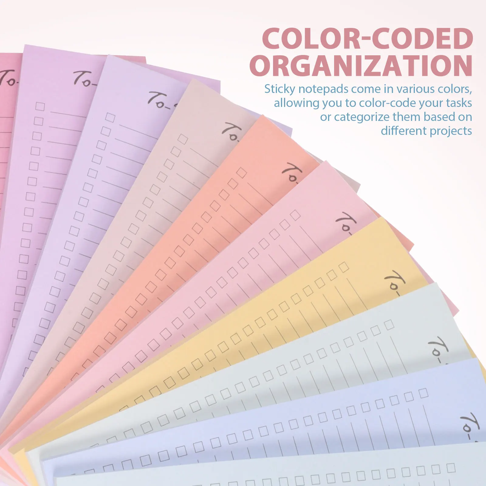 -Color-coded organization: Sticky notepads come in various colors, allowing you to color-code your tasks or categorize them based on different projects