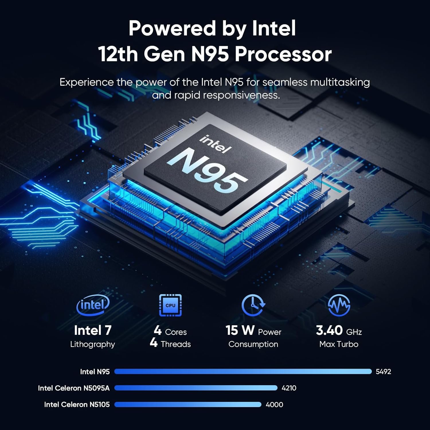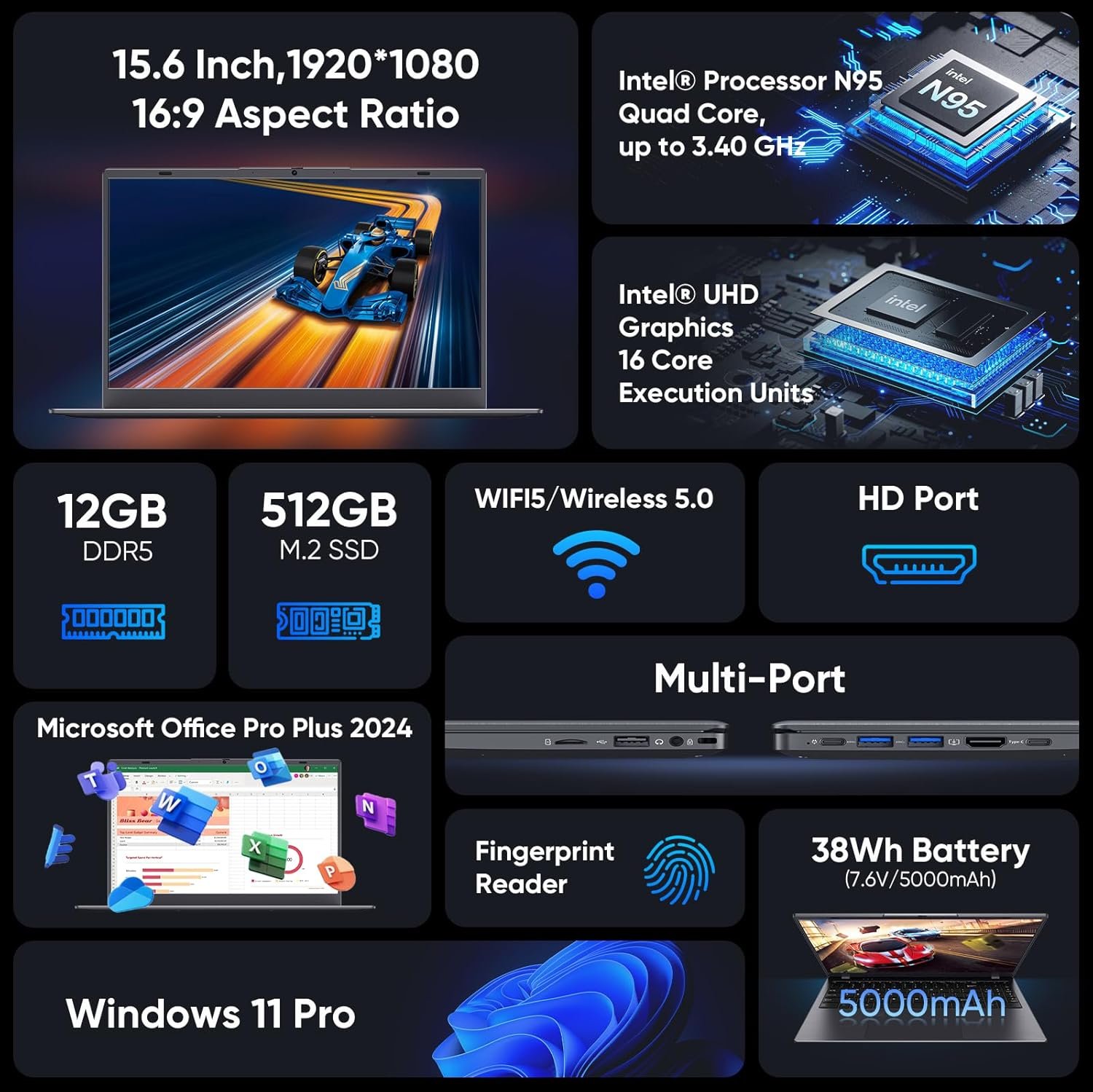 About this item 【13th generation intel chip】 Equipped with 13th Alder Lake Refresh series N95 chip, This high-definition notebook computer runs smoothly, with super-fast processing speed, and can easily cope with various productivity software without stuttering.Win 11 Pro is pre-installed and licensed; turbo frequency up to 3.4GHz, 10nm quad-core, and four-thread fast processing. 【Ultra-Restoring 1080P Display】 The ultra-thin notebook computer adopts a 15.6-inch full HD, 1920*1080 high-resolution screen, a large IPS process 16:9 display, and 100% RGB color reproduction; restores the essence of color and protects eyesight. Guaranteed high-quality sharp, lifelike images in millions of colors. 【Large-capacity full-size keyboard】 The ITAMRYO laptop also has 12GB DDR5 RAM, 512GB SSD plus up to 256GB MicroTF interface, up to 1TB, to satisfy your study, work, and entertainment anytime, anywhere! Full-size keyboard, including QWERTY US key set, and full number pad. Enlarged keyboard size is more suitable for hand use! The enlarged version of the 6.5-inch touchpad has a larger operating space! 【Camera Privacy Shutter Slider and Fingerprint Recognition】This laptop computer comes with a 2.0 MP camera, its privacy camera is a manual shutter located directly above the webcam. Moving this slider will close or open the shutter, you’ll know that your webcam is covered when you use the red pattern of the shutter instead of your webcam. And it includes a built-in cooling fan that reduces the device’s operating temperature which both limits heat exposure to the hardware and makes the device itself more comfortable to use. It also has equips with fingerprint recognition unlock function. 【Multifunctional Connection Design】 In order to improve the practicality and connectivity and portability of the laptop, it has excellent wired and wireless connectivity, with 1 USB 3.0 ports, 1 USB 2.0 port, 1 Full Function Type-c port, standard HDMI and 3.5mm headphone ports, PD 3.0 Type-c charging port(Max 65W); WiFi 5, BT5.0; Support built-in microphone, and surround audio playback! We’re so confident in our line of laptops and notebooks.