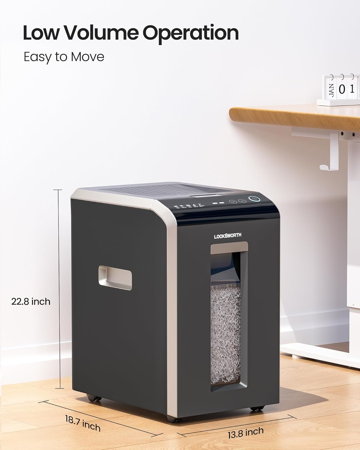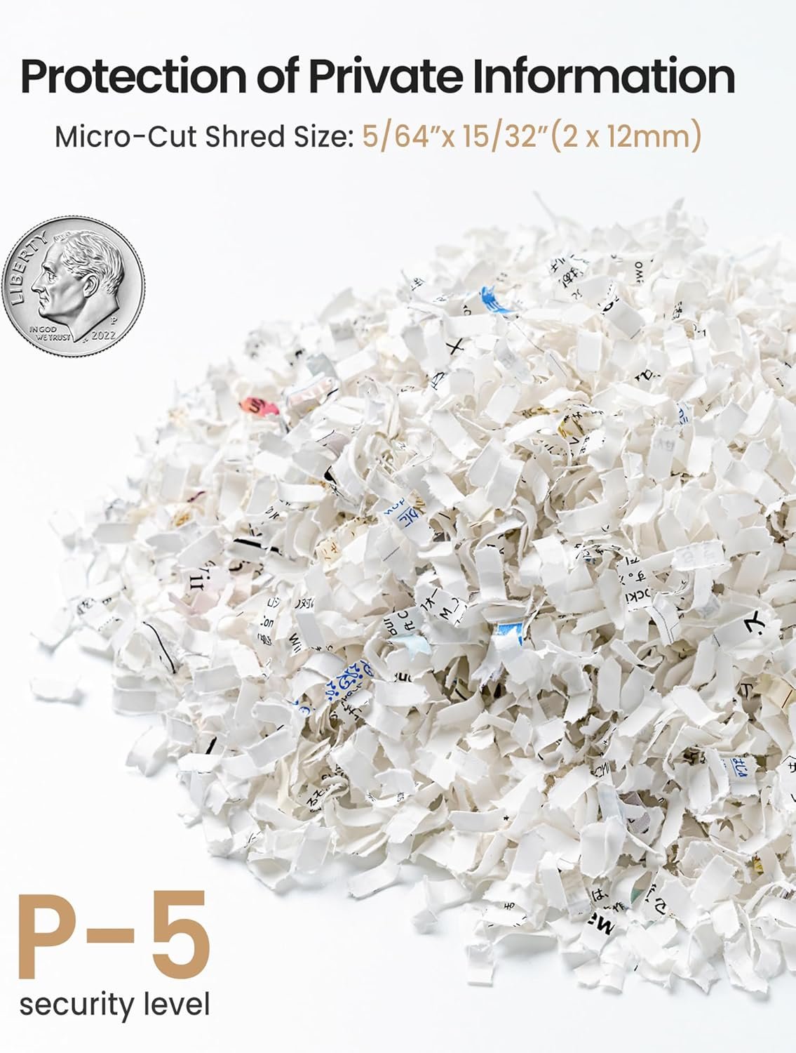 This home office shredder can shred up to 200 sheets per pass(auto mode), turning documents into unreadable 5/64 x 15/32 inch particles to keep your information secure