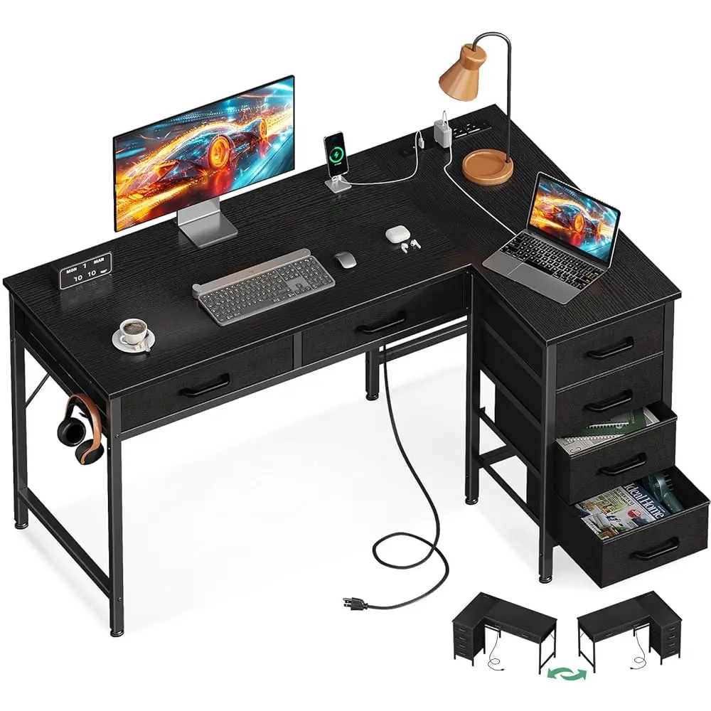 【L Shaped Desk With Drawers】This Home Office Desk Is Equipped With 6 Fabric Drawers. You Can Put Your Office Supplies Or Gaming Equipments In Order And Dust-Free. The Drawers Are Designed To Keep Your Space Organized And Clutter-Free.