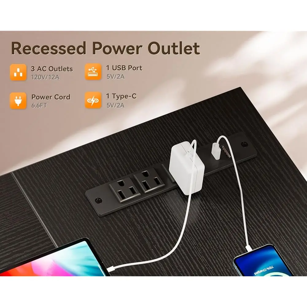 【Built-In Power Outlet】This Computer Desk Is Equipped With 3 Ac Outlets, 1 Usb Port, And 1 Type C Port. You Can Conveniently Charge Your Smart Phone, Gaming Gear Or Bluetooth Devices When Working From Home Or Playing Computer Games.