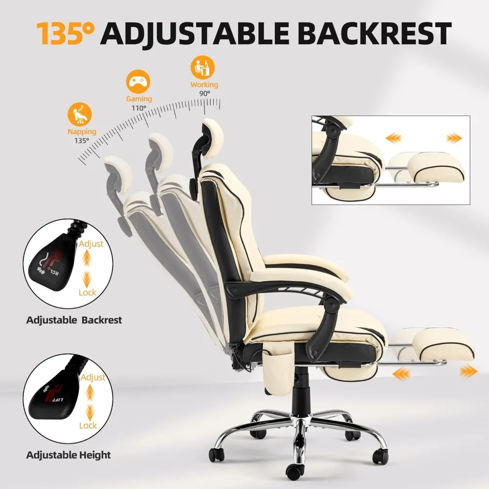 • 𝐀𝐝𝐣𝐮𝐬𝐭𝐚𝐛𝐥𝐞 𝐇𝐞𝐢𝐠𝐡𝐭 𝐰𝐢𝐭𝐡 𝐅𝐨𝐨𝐭𝐫𝐞𝐬𝐭: Customize your comfort with adjustable seat height and a tilt range of 𝟗𝟎 𝐭𝐨 𝟏𝟑𝟓 degrees. This home office chair is equipped with a retractable footrest that can be used to relax after work or study