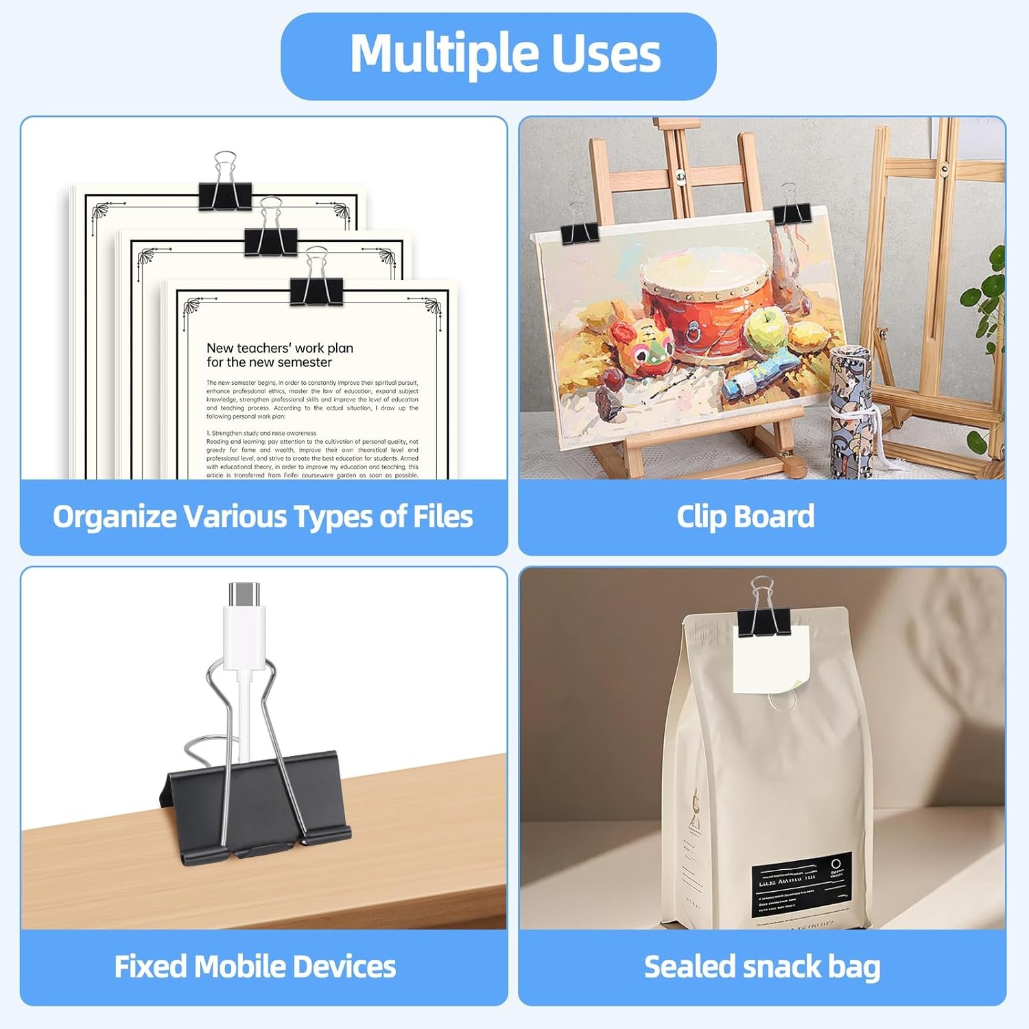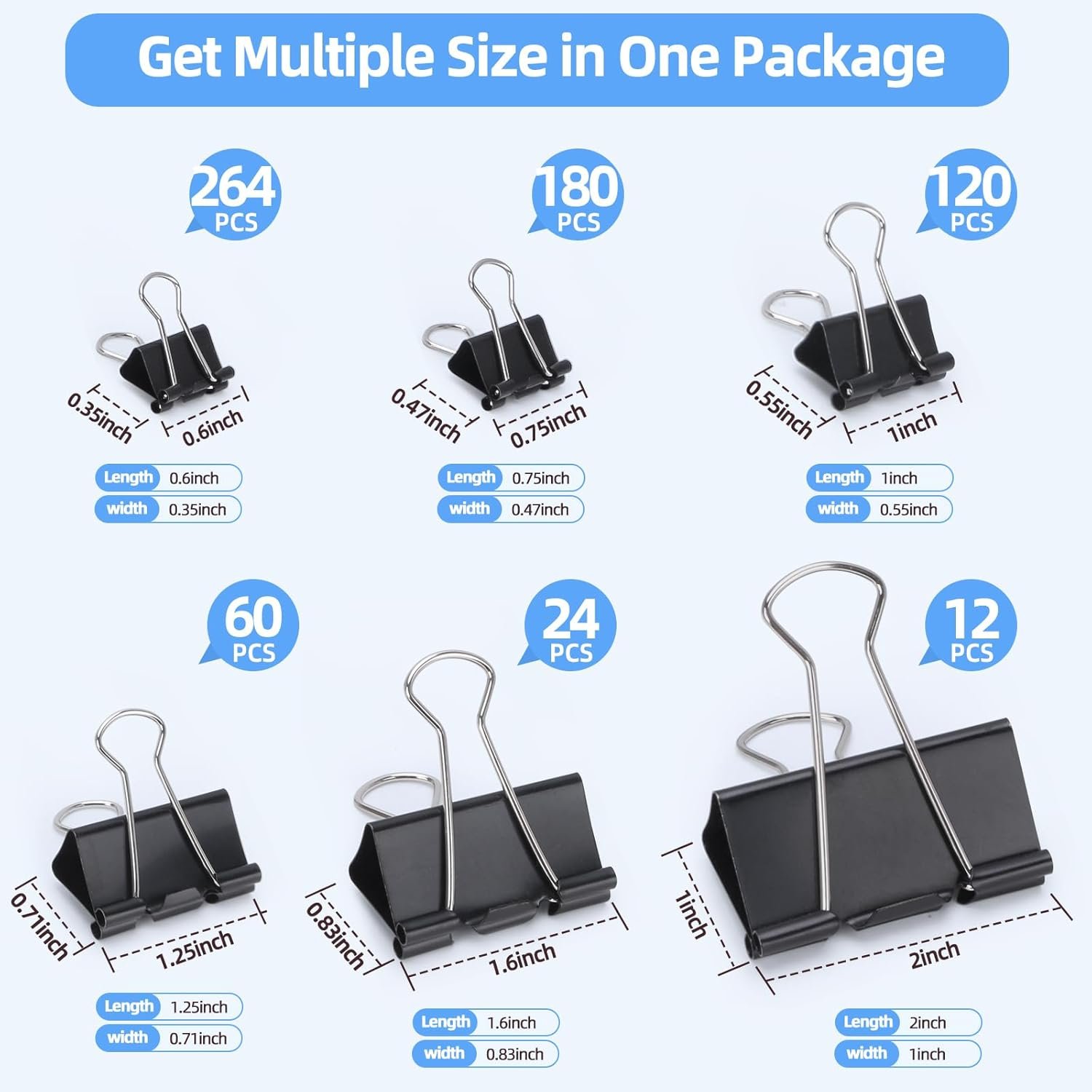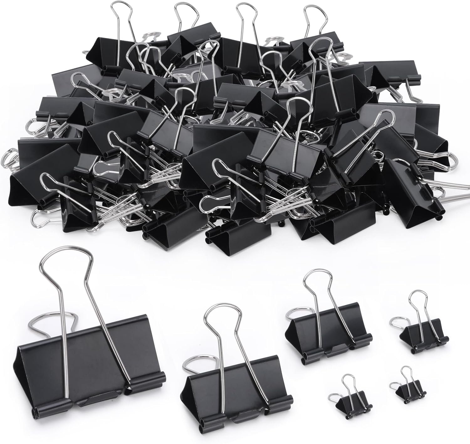 660 PCS Binder Clips Assorted Sizes Including X Large, Large, Medium, Small, X Small and Micro, Office Supplies File Clamps Paper Clips, 6 Sizes in 1 Pack, Metal Black Clamps for School, Home