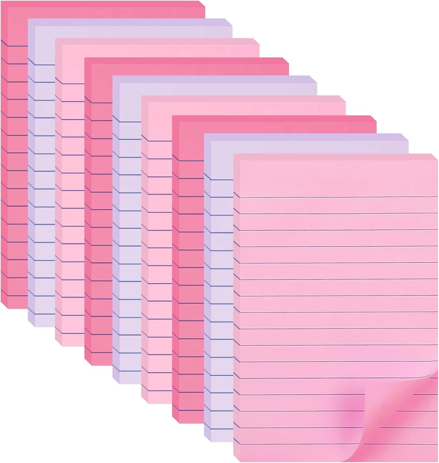 9 Pack Lined Sticky Notes 4X6 in Post Sticky Notes with Lines, Large Ruled Post Sticky Colorful Super Sticking Power Memo Pads Strong Adhesive (Pink Themed)