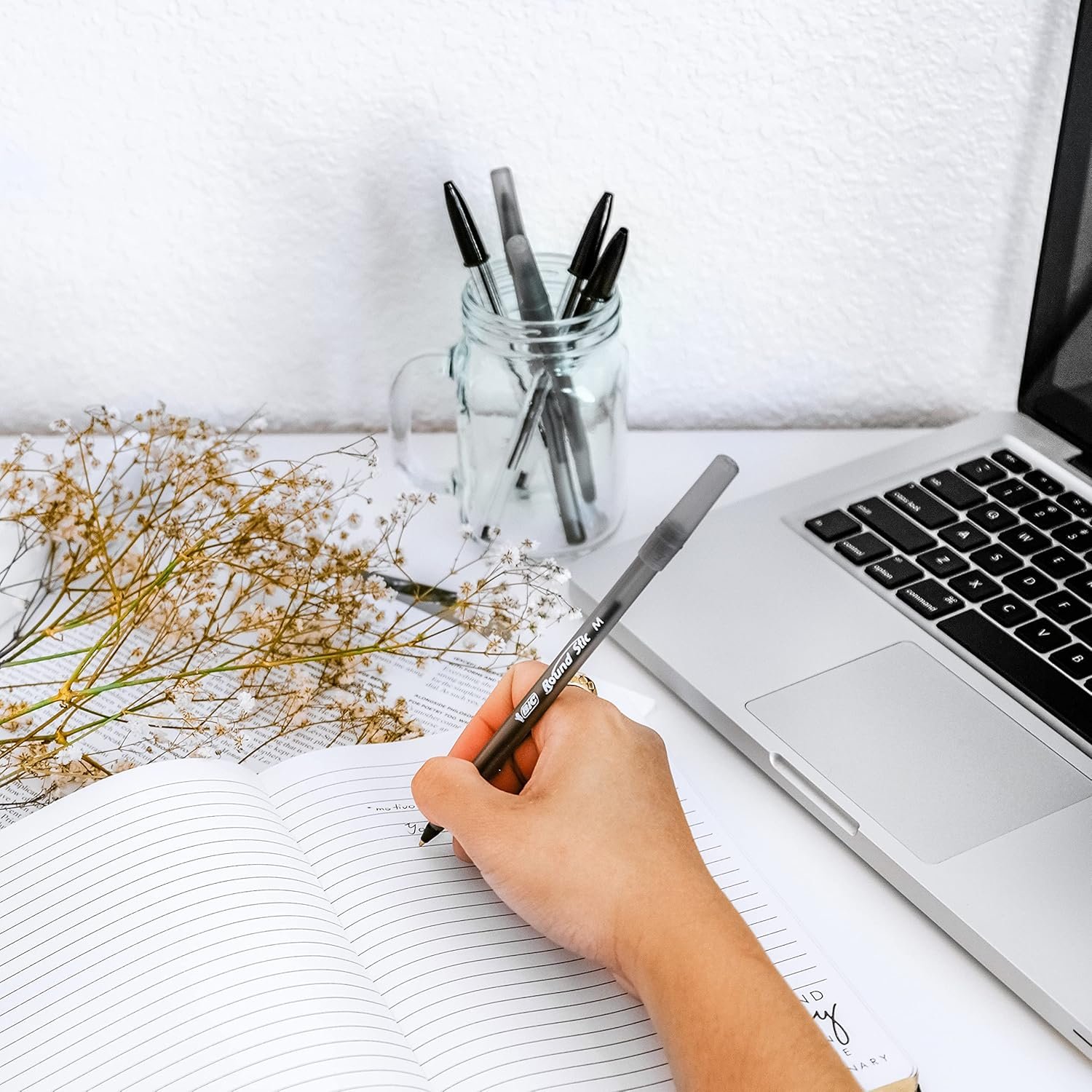 About this item One 60-count pack of BIC Round Stic Xtra Life Black Ballpoint Pens Versatile 1.0mm medium ballpoint pens are ultra long lasting and the No. 1 selling ballpoint pens in the US Reliable BIC ballpoint pens that spread the black ink smoothly and evenly, providing consistent ink flow Writing ballpoint pens with a translucent barrel shows the current ink supply, so you can know when to grab a new pen from the pack Dependable ballpoint pens bulk pack with a round, comfortable barrel design and frosted cap — a sleek, practical pen choice for office or school supplies
