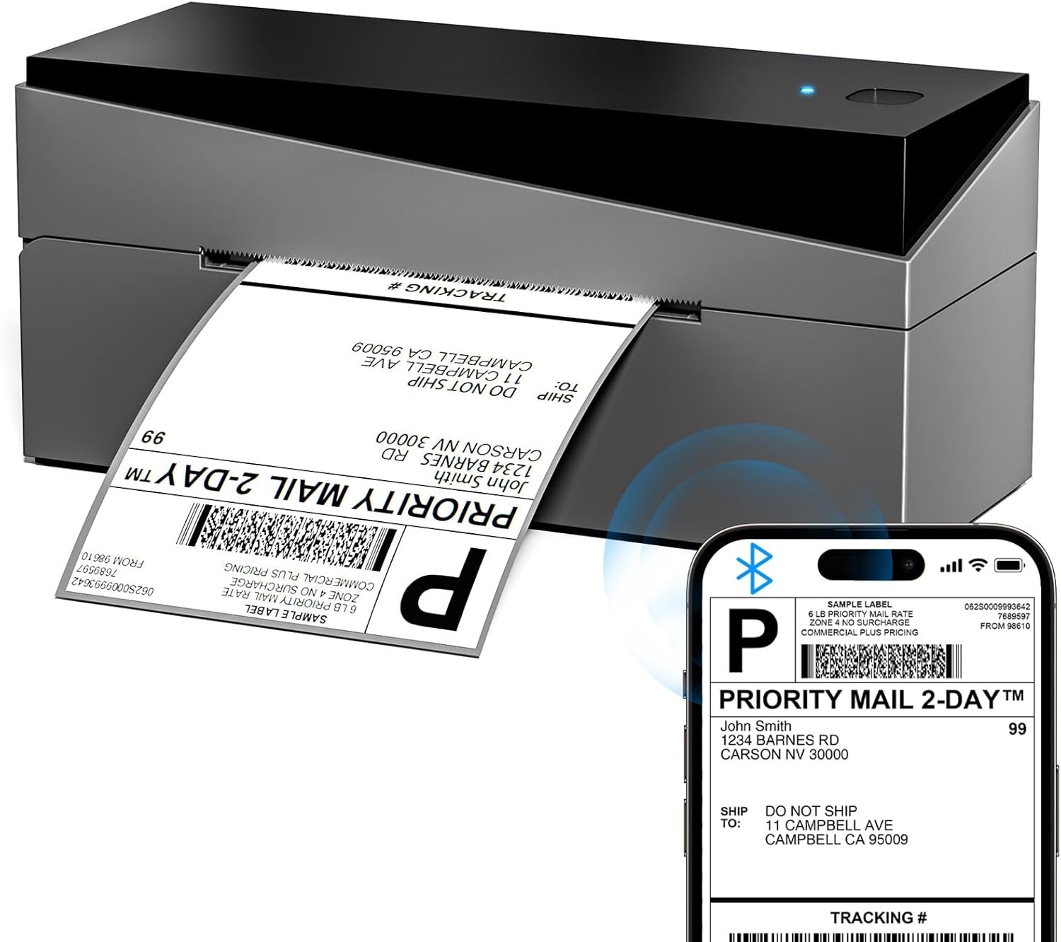 Bluetooth Shipping Label Printer 4×6, 249BT Thermal Label Printer 4×6 for Small Business, Shipping Packages, Office, Home, Compatible with Android iPhone iPad Windows macOS Chrome USPS Etsy