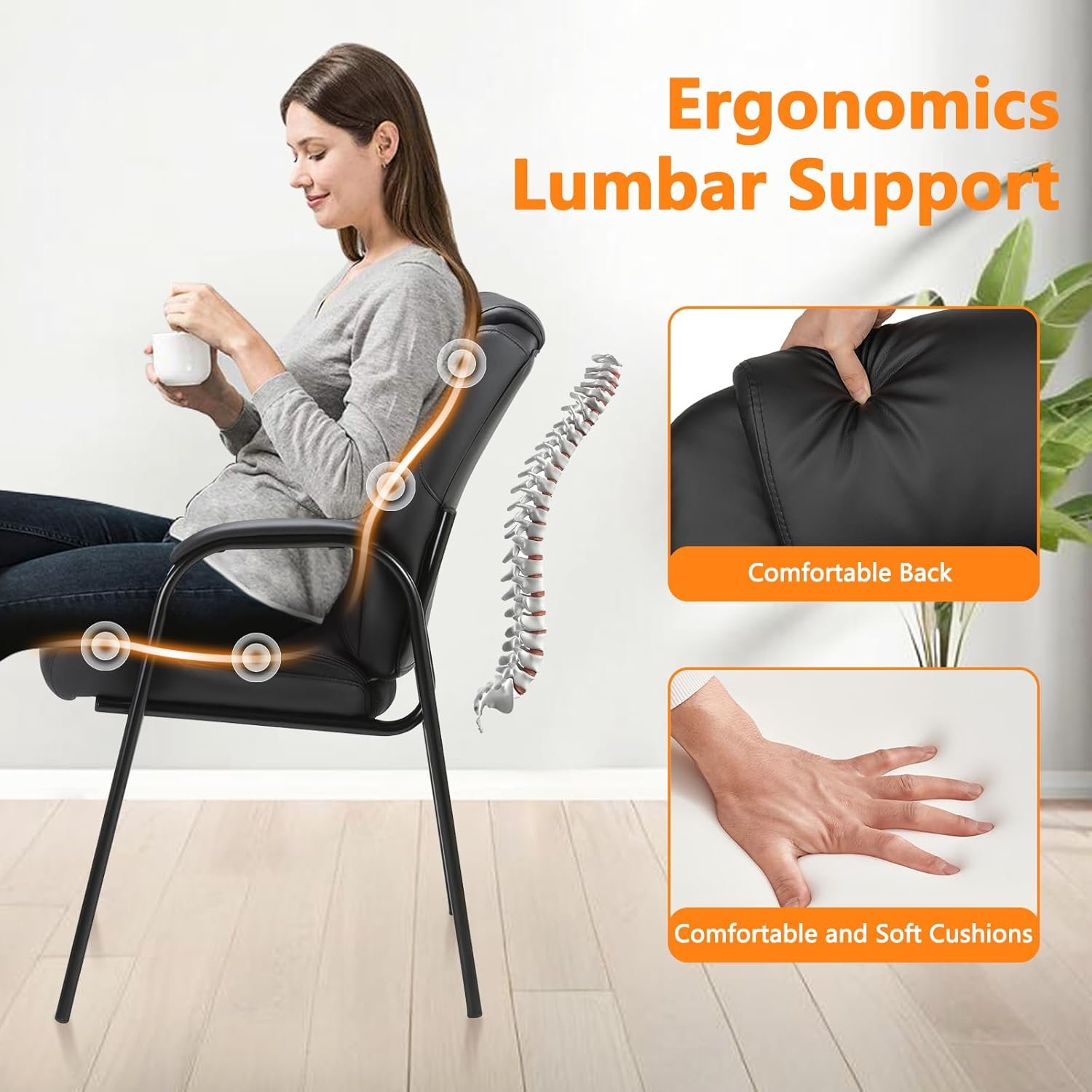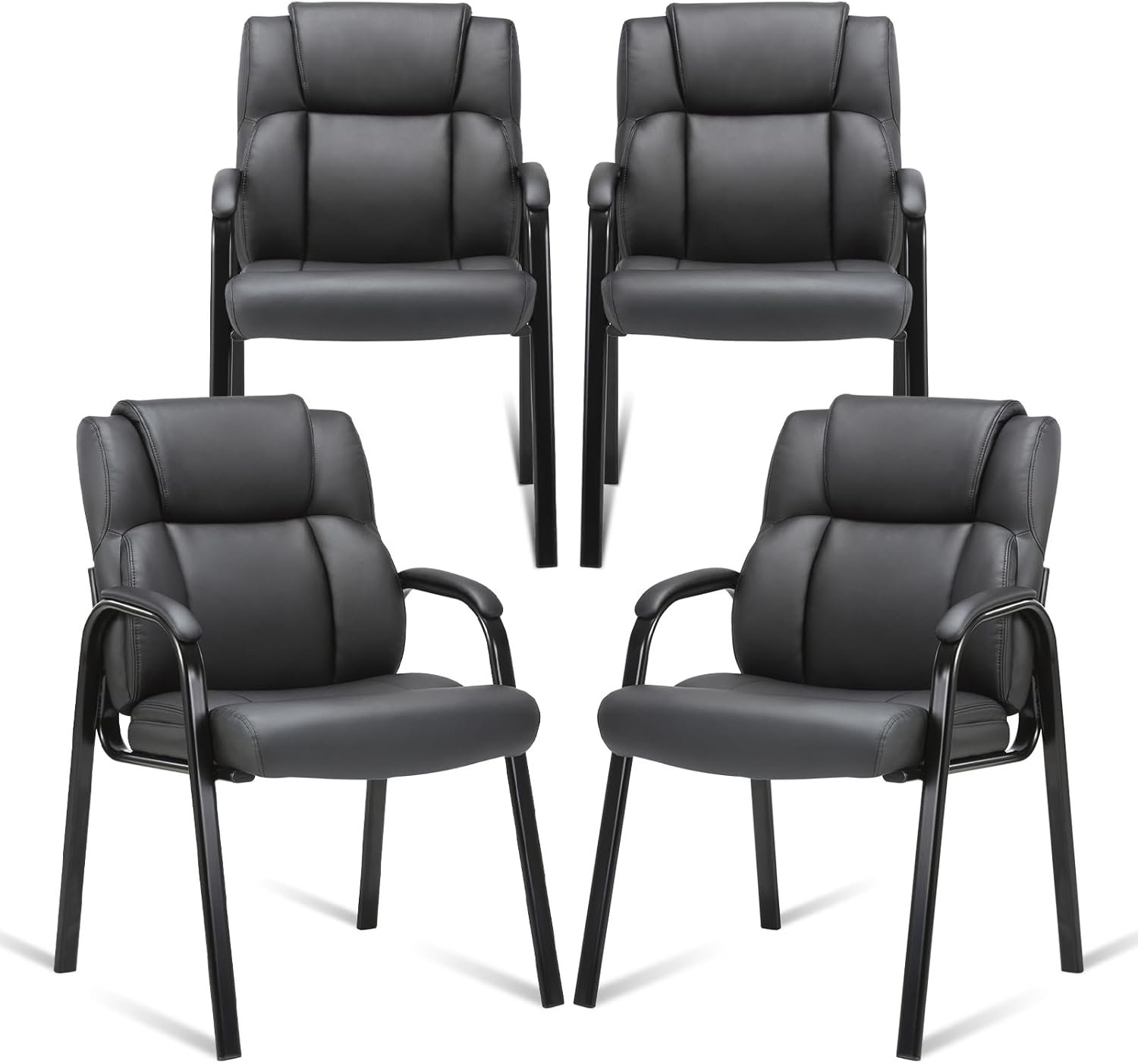 CLATINA Leather Guest Chair with Padded Arm Rest for Reception Meeting Conference and Waiting Room Side Office Home Black 4 Pack