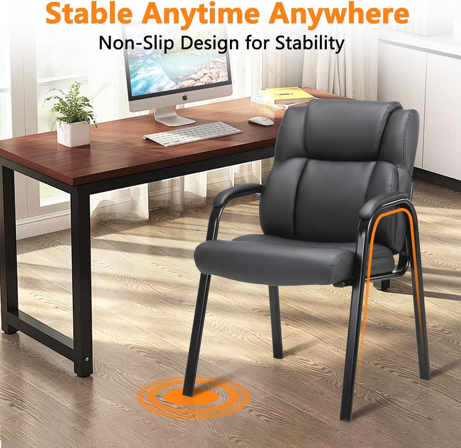 About this item Ergonomic Design Back:The proper lean back angle and ergonomic backrest make our office guest chair fit your back and waist more, which will help provide you and your clients nice sitting experience. High Quality PU Leather:The leather upholstery of our meeting room guest chair is stitched to be absolute perfection. It is elegant design and this chair must be able to increase the luxurious feel of your office. Padded Arm Rest:Apart from back and seat, we designed padded arm rest for this guest chair. It has beautiful curve and smooth & soft touching feel. Easy To Assemble:This guest chair is easy to install, attached detailed installation instructions, screws and tools. This leather guest chair can hold up to 275lbs. 100% Satisfaction Guarantee: Customers satisfaction will always be our No.1 priority. We provide the service of 30-Day Refund without Preconditions and 3-Year Limited Warranty. Feel free to contact us if you have any questions.