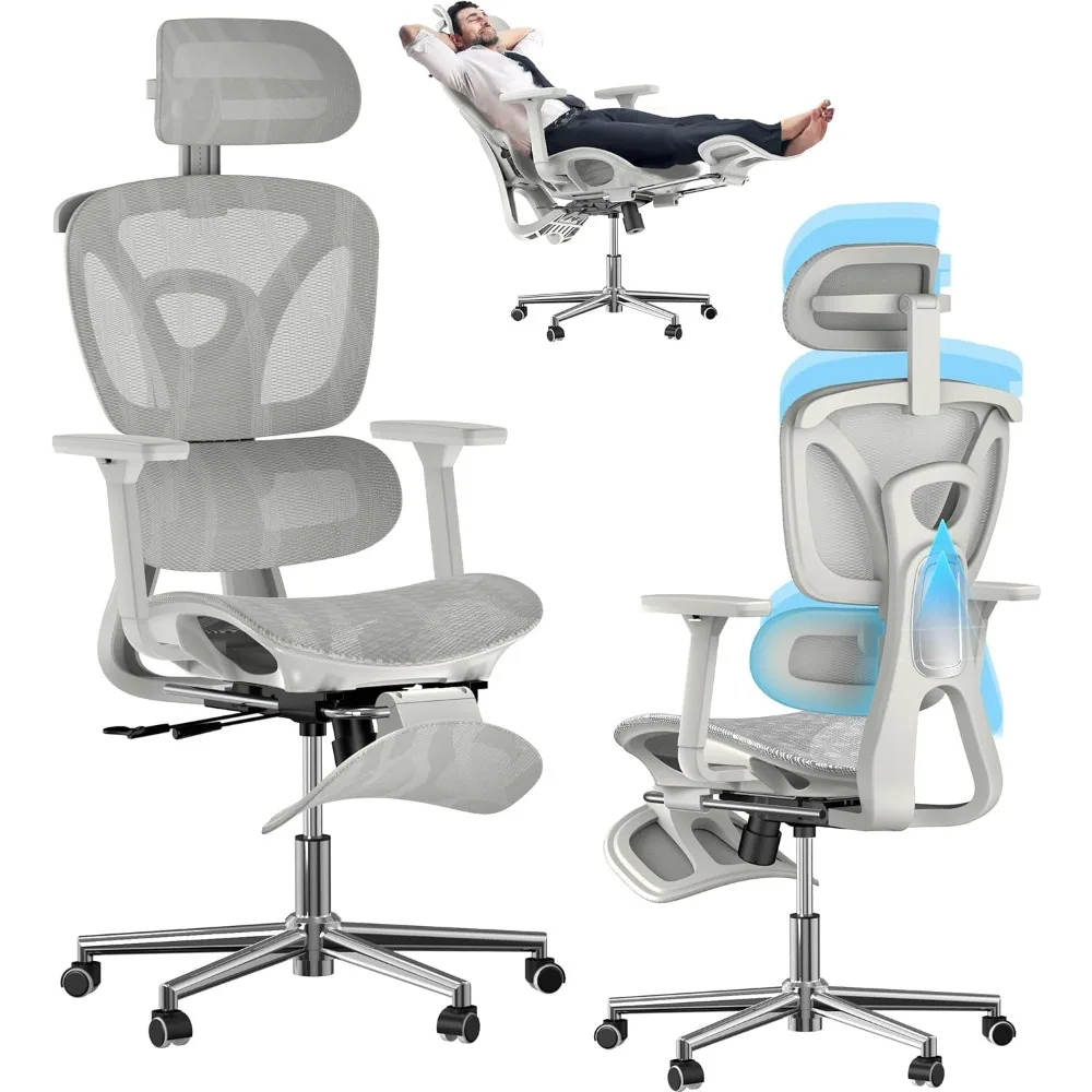 Ergonomic Mesh Office Chair with Foot Rest, Big and Tall Computer Chair with 3D Adjustable Headrest and 4D Armrest, 350 LBS Capa