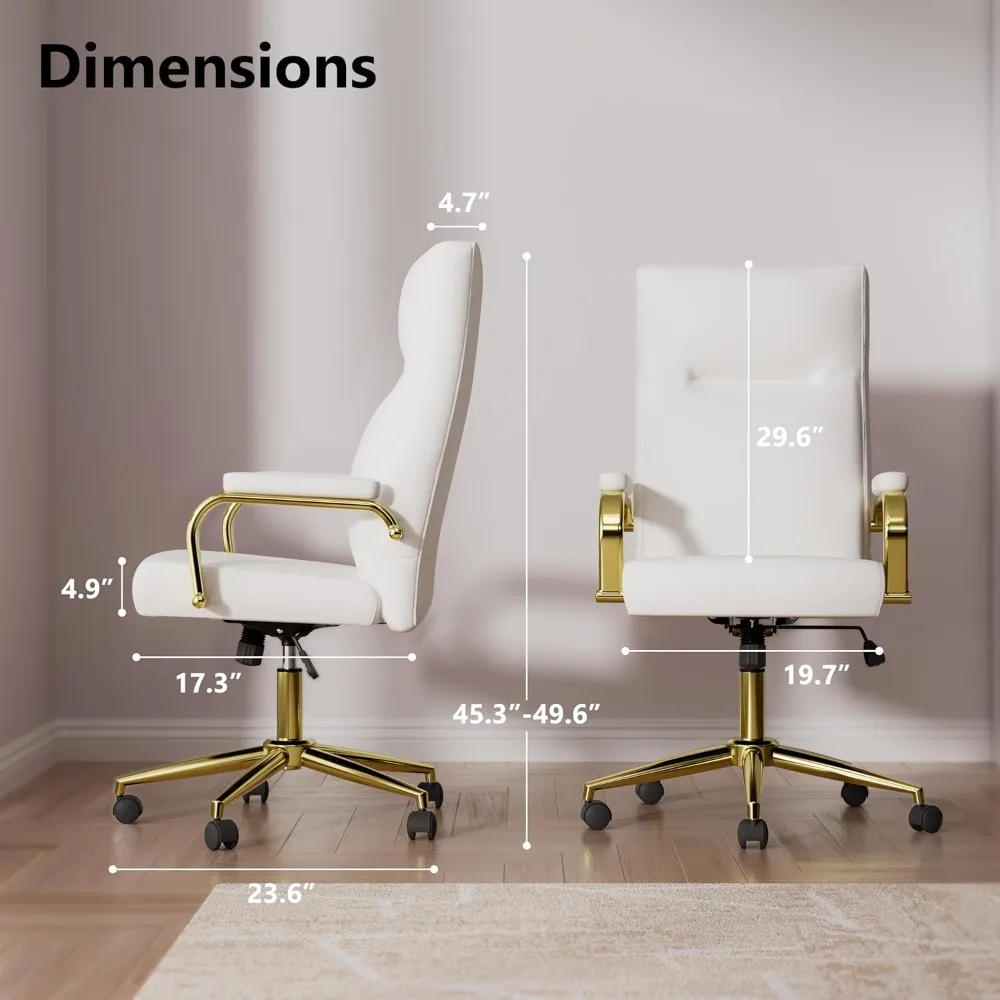 • Adjustable Height Desk Chair: The white and gold office chair height adjusts from 15.7″ to 20″ to meet different needs; Rocking function from 90 to 120 degrees helps relax back muscles and improve blood circulation during breaks