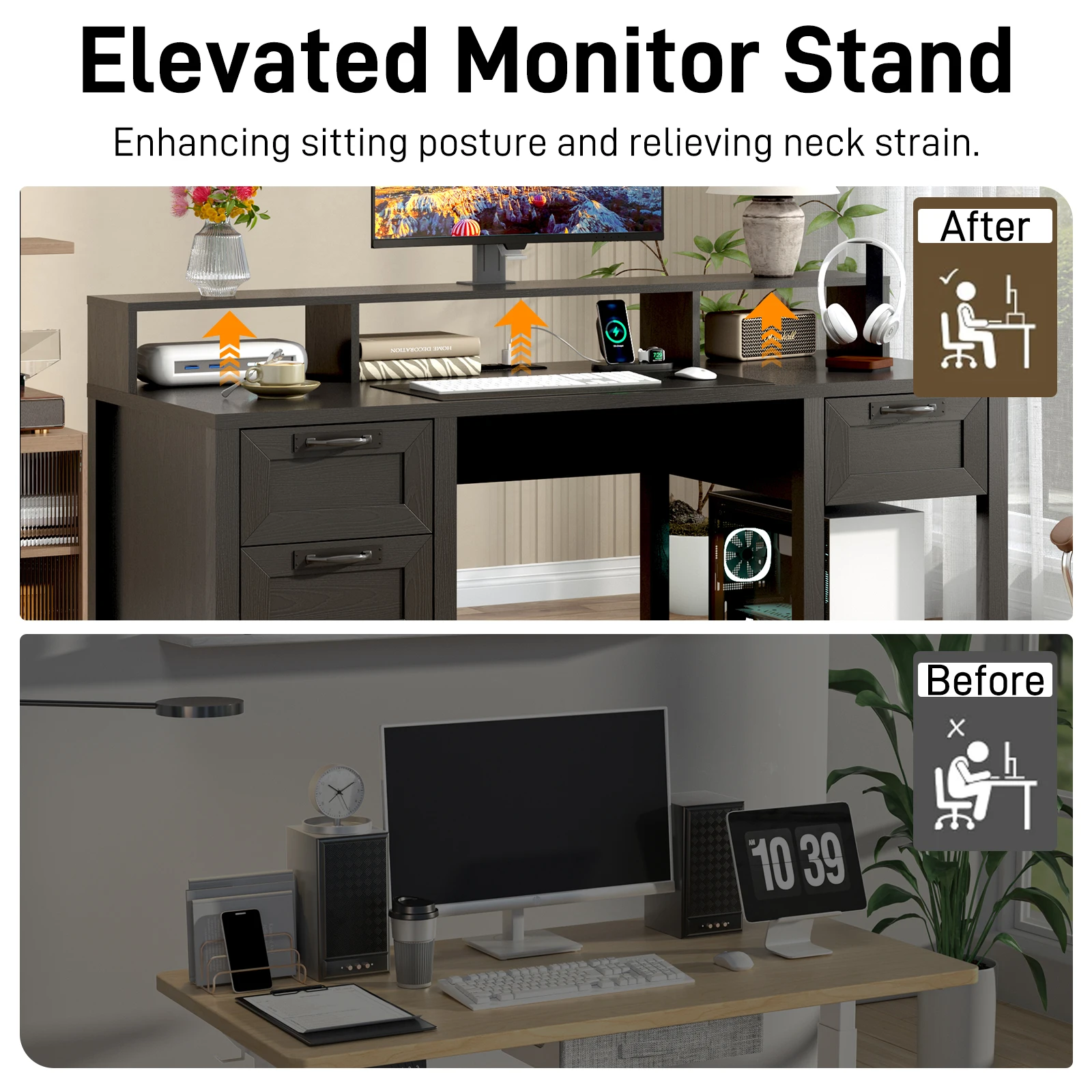 Stay powered up with built-in USB and power outlets, ensuring your devices are always charged and ready, making this Wood Home Office Desk a perfect blend of functionality and style.