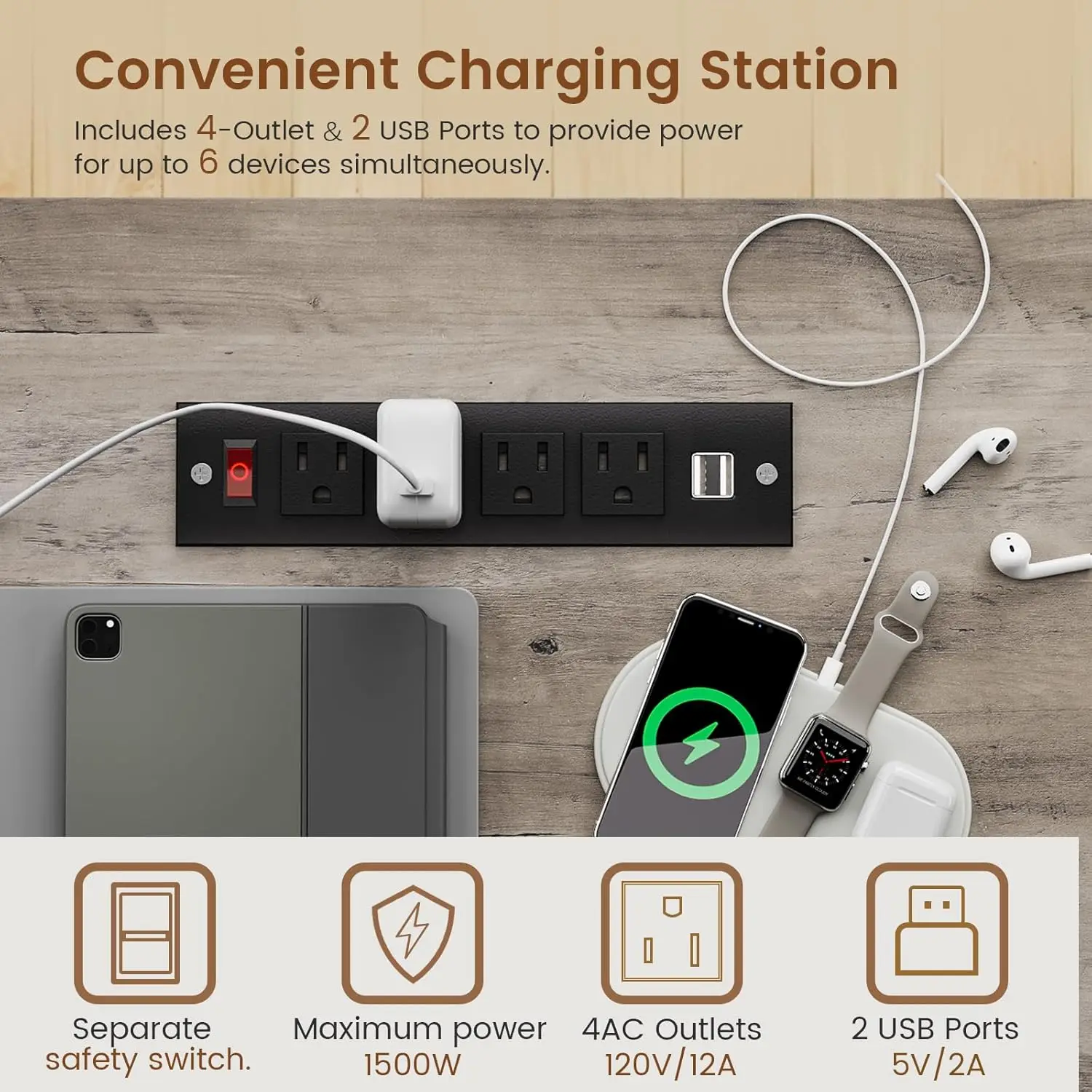• 【User Friendly】The farmhouse executive desk includes a built-in power strip with 4 outlets & 2 USB Ports provides convenience for charging your gaming gear, tablet、printer or phone.Don’t worry about not having enough power sockets. Also includes an on-off switch, thanks to the on-off switch, one-button power off to ensure safe electricity use, which strengthens security.
