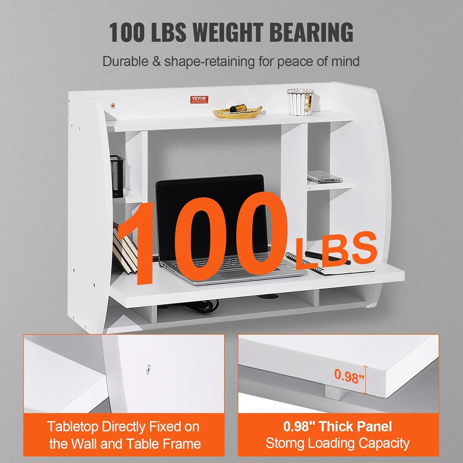 100 Lbs Weight Capacity: This Floating Office Desk With 1.18-H Panels Of High-Strength Particle Board, Ensuring Durability And Minimal Deformation. For Reased Stability, The Desktop Is Directly Attached To The Wall And Table, With Extra Installation Holes, It Supports Up To 100 Lbs.