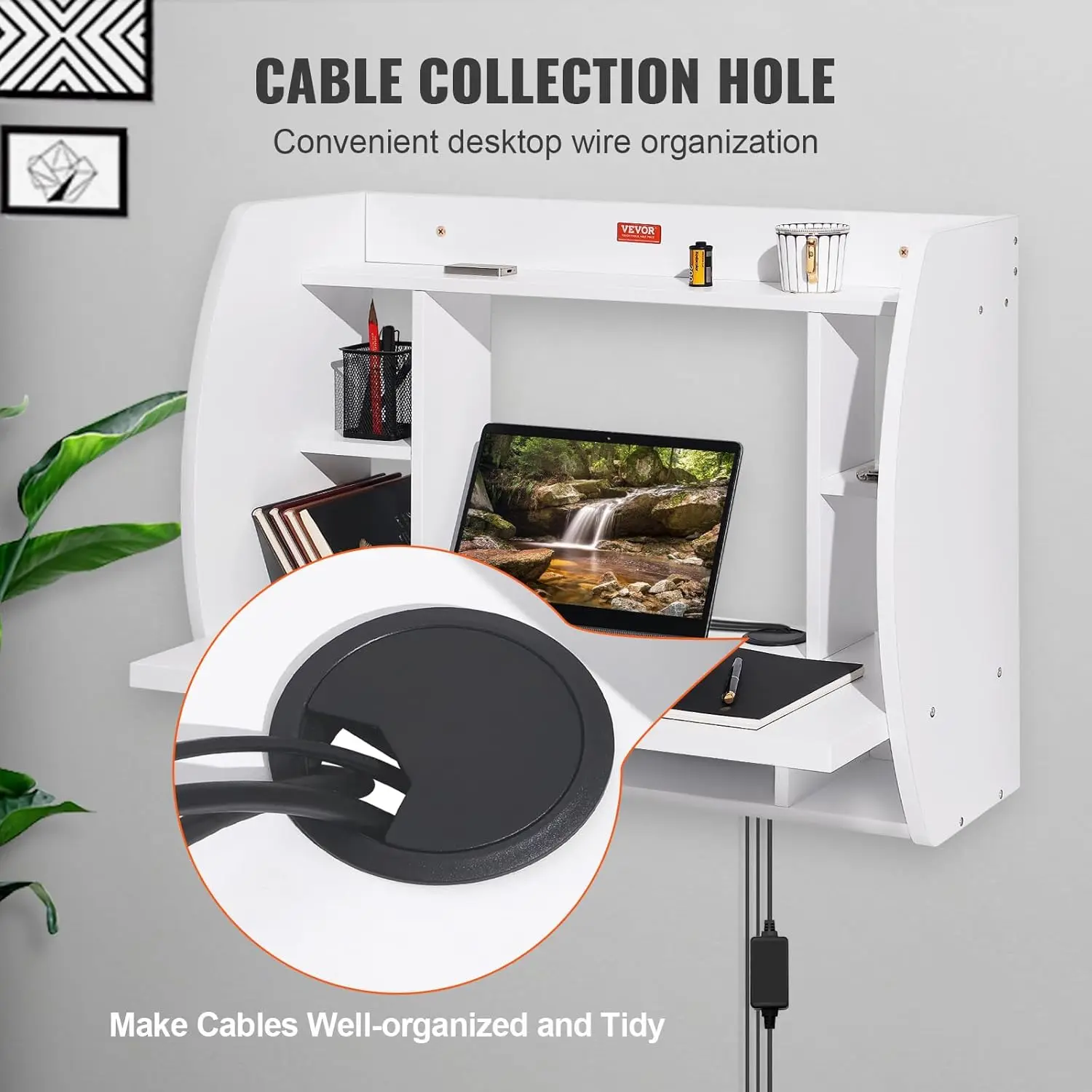 Convenient Design: Equipped With A Power Socket And A 70.9 In/1.8M Power Cord For Added Convenience. Users Can Easily Charge Devices Like Laptops And Phones While Studying Or Working At The Wall Desk. It Also Ludes A Cable Management Hole For Hassle-Free Wire Organization, Ensuring A Comfortable User Experience.
