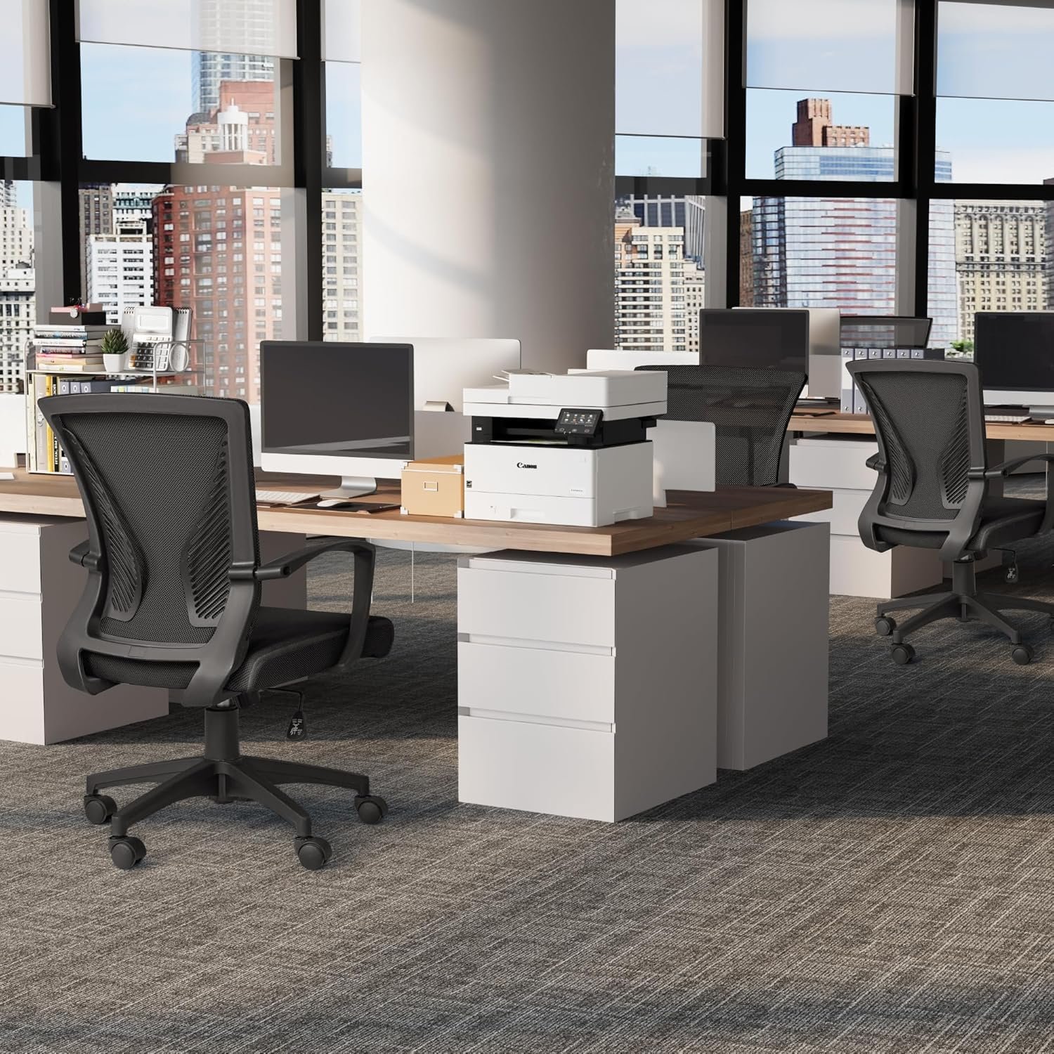 About this item Ergonomic Design: The overall design of this office chair is ergonomic, two lumbar supports on the backside of the chair back are not only for beautiful looking, when you lean in the chair, it feels comfortable like two hands are supporting your waist, with a slightly concave design on the cushion, this chair can effectively relieve the back pain that caused by long hours of sitting, this will be a very wonderful experience for your use Thicker Cushion Double Comfort: Compared with other ordinary office chairs, the cushion of this office chair uses high-density elastic sponge, which is softer, thicker and more comfortable, and covered by breathable mesh cloth. The innermost layer is made of solid wood. The three-layer structure design can not only ensure stability and durability of the seat, but also double your comfort in daily work High-Quality Materials: In order to enhance customer’s experience when sitting in the chair, we adopt better materials to improve the comfort and stability of the chair. High-quality mesh surface with smooth texture and better breathability. The high grade of gas lift is certified by SGS, and the maximum support capacity is 240 pounds. The BIMIFA passed five-star leg base, ensures stableness and safety when sit 360-Degree Movement: The height of the seat can be adjusted using the handle at the right bottom of the seat, meet different heights of desks. Also, you can tilt backward to relax, switch your sitting posture, and adjust the tilting angle by twisting the tension column under the chair seat. The office chair uses smooth casters, and 360° horizontal rotation without resistance, it is quiet and the good PU material won’t hurt floor on moving Correct Insallation Steps: Install the armrests and backrest first, but don’t tighten the screws yet, then install the armrests and cushions, install the cushions and backrest, and finally tighten all the screws
