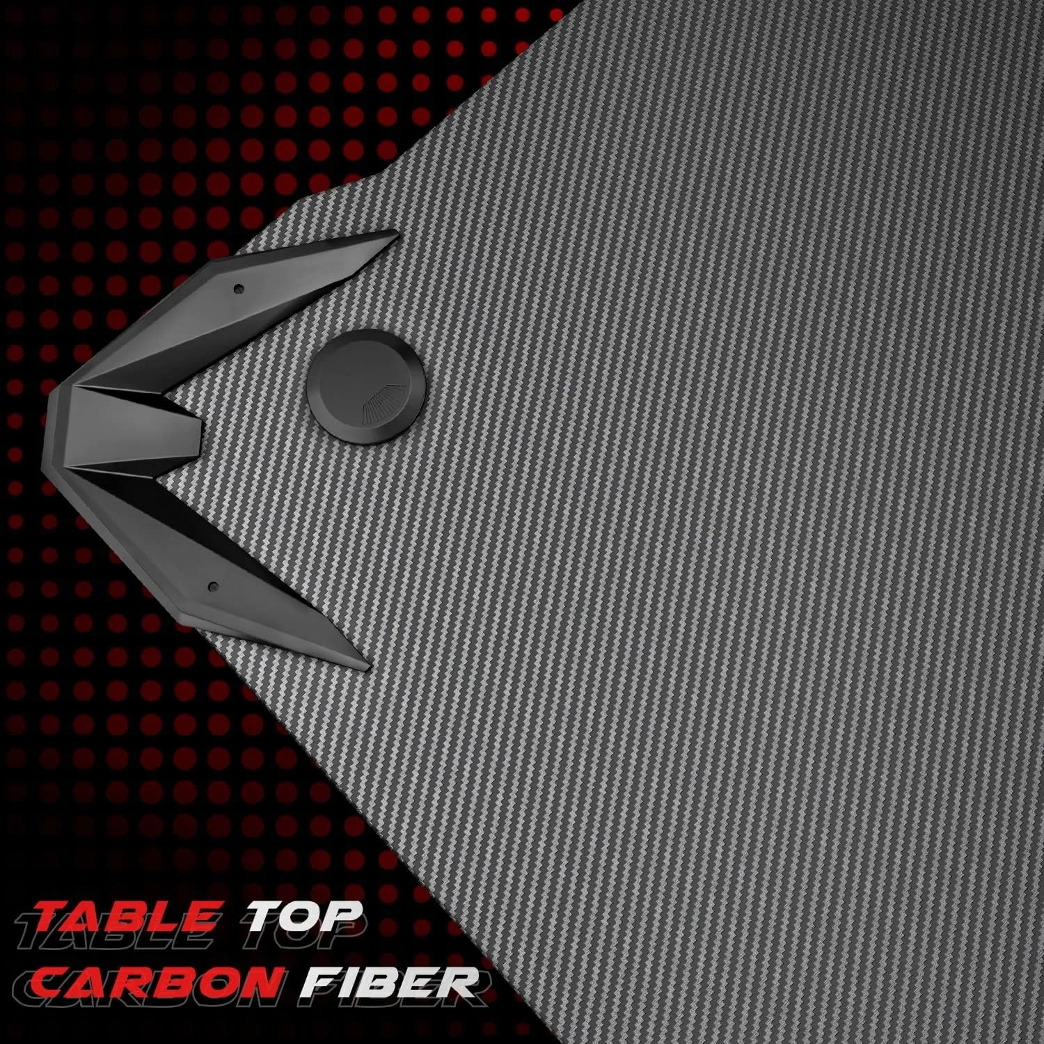 • Carbon Fiber Surface:  gaming desk designed for all game players. Carbon fiber textured desktop, smooth touch, textured appearance, scratch resistant, anti-collision design, and it has better performance of waterproof and sweat proof, upgraded games and office experience.