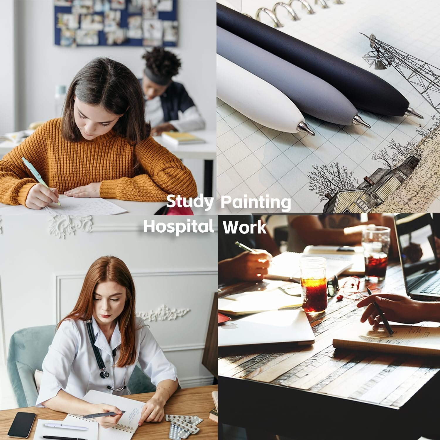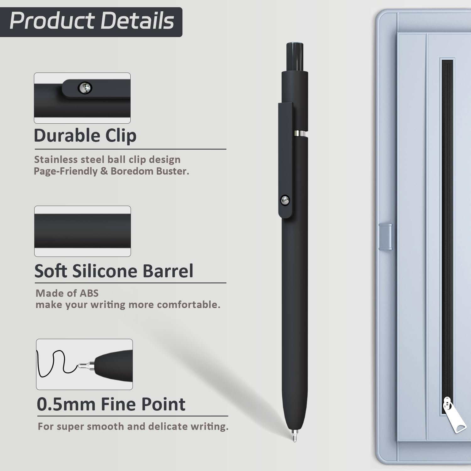 About this item [Gel Pens Package] You will receive 6pcs quick-drying ink pens with a modern minimalist design, Soft silicone features grip bring a super soft touch feeling which makes each gel pen easy and comfortable to hold. [Quick-Drying Ink] This journal pens dry quickly, with no leak, no smears, no smudges, and no globs. It’s smooth and continuous when writing and drawing. You can use them for all your writing, they don’t run through the paper. [Rolling Ball Design] The pocket clip with little steel ball design can be easily attached to notebooks pockets and binders. Also, the little steel ball on the clip is very entertaining to spin. [0.5mm Fine Point] 0.5mm black ink pens fine point smooth writing pens, writes small and clear, the pens guarantee bold and legible writing, suitable for both professional and personal use. [Perfect Pens] These gel pens are ideal for women and men who enjoy decorating their journals or anyone seeking reliable. They make Office Desk Accessories, back-to-school supplies, party favors, and are perfect for occasions like birthdays, Halloween, and Christmas.
