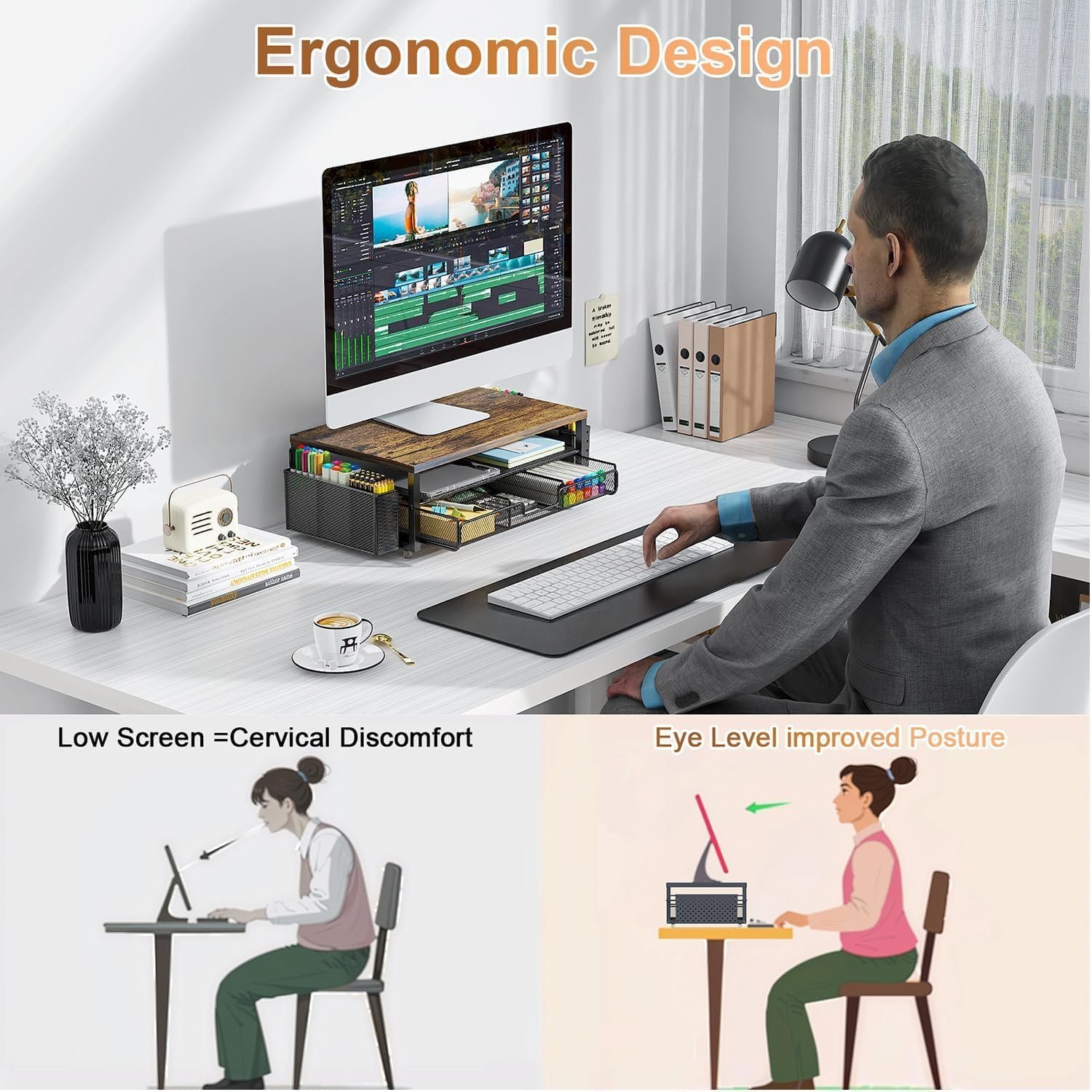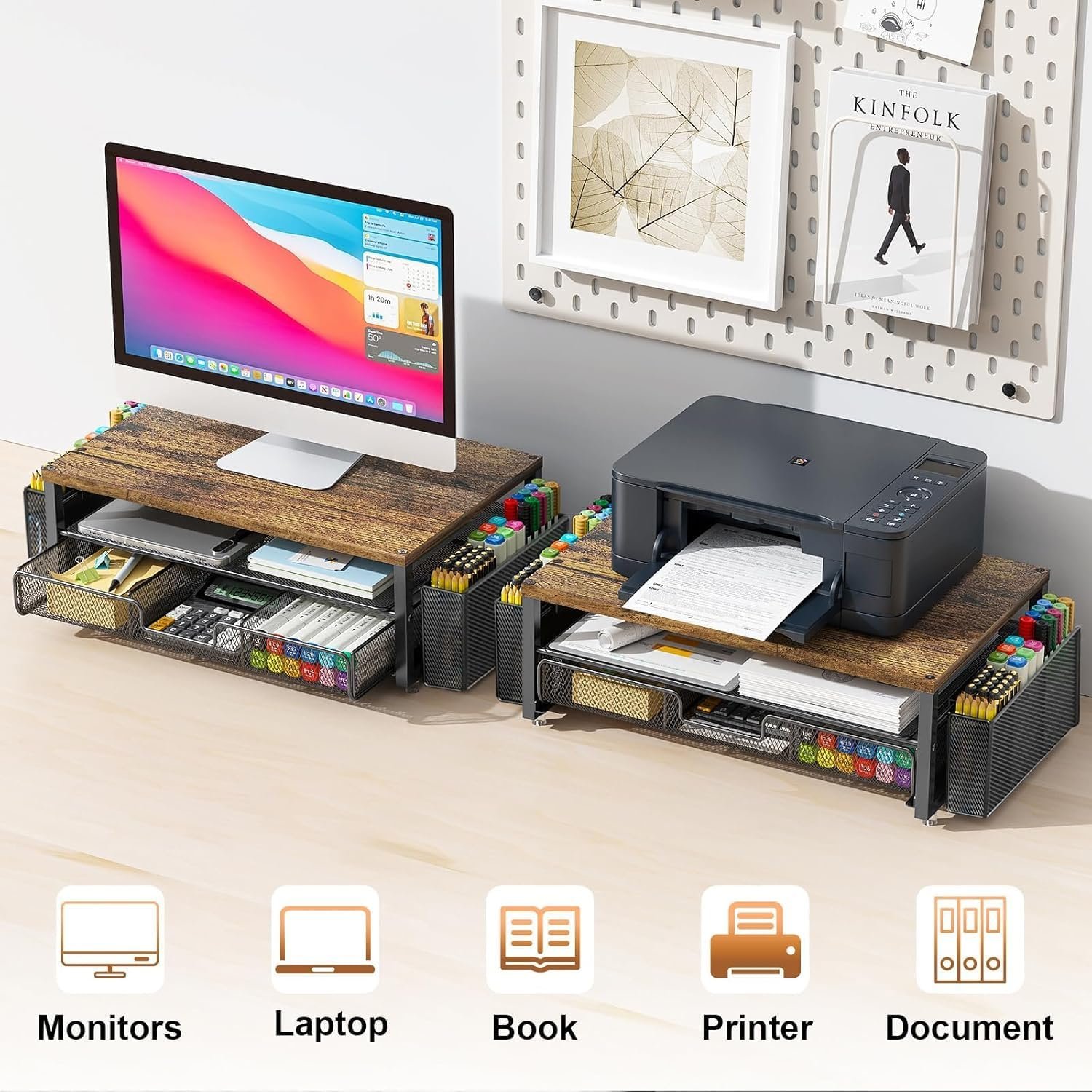Taking into account your need to organize desktop office supplies, this monitor stand provides additional storage space, helping to keep your desktop neat and organized.