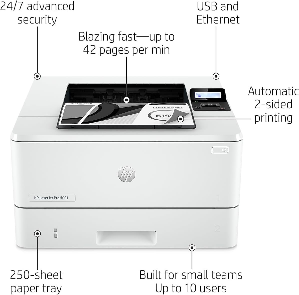 About this item Large workteam solution: Support your dynamic workteam with this high-speed smart printer, ideal for up to 10 users. HP Pro-class print speed: Step up your workflow. HP Pro-class print speed reaches up to 42 ppm to meet high-demand environments. HP Smart: Do more in fewer steps. Simple shortcuts allow your employees to complete common tasks with just a touch. HP Web Jetadmin: Get productivity in the palm of your hand. Print and save time with Shortcuts from HP Smart. Simple setup: Set up your printers quickly wherever work happens. Cloud connectivity makes it easy for your IT team.