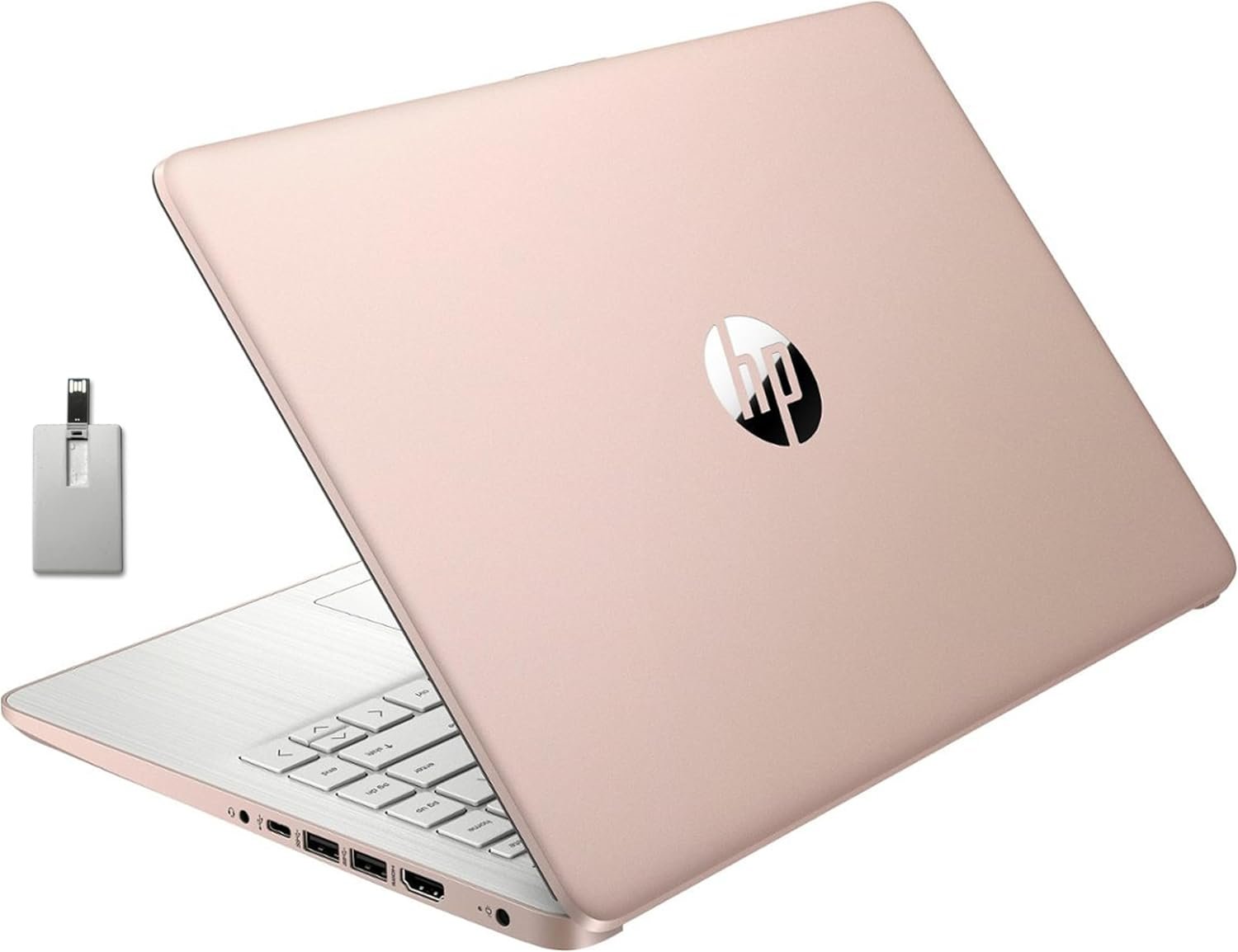 HP Premium Stream 14″ HD BrightView Laptop, Intel Celeron N4120, 16GB RAM, 64GB eMMC Storage, HD Webcam, UHD Graphics, 1 Year Office 365, Bluetooth, WiFi, HDMI, Win 11s, Gold, 32GB Hotface USB Card