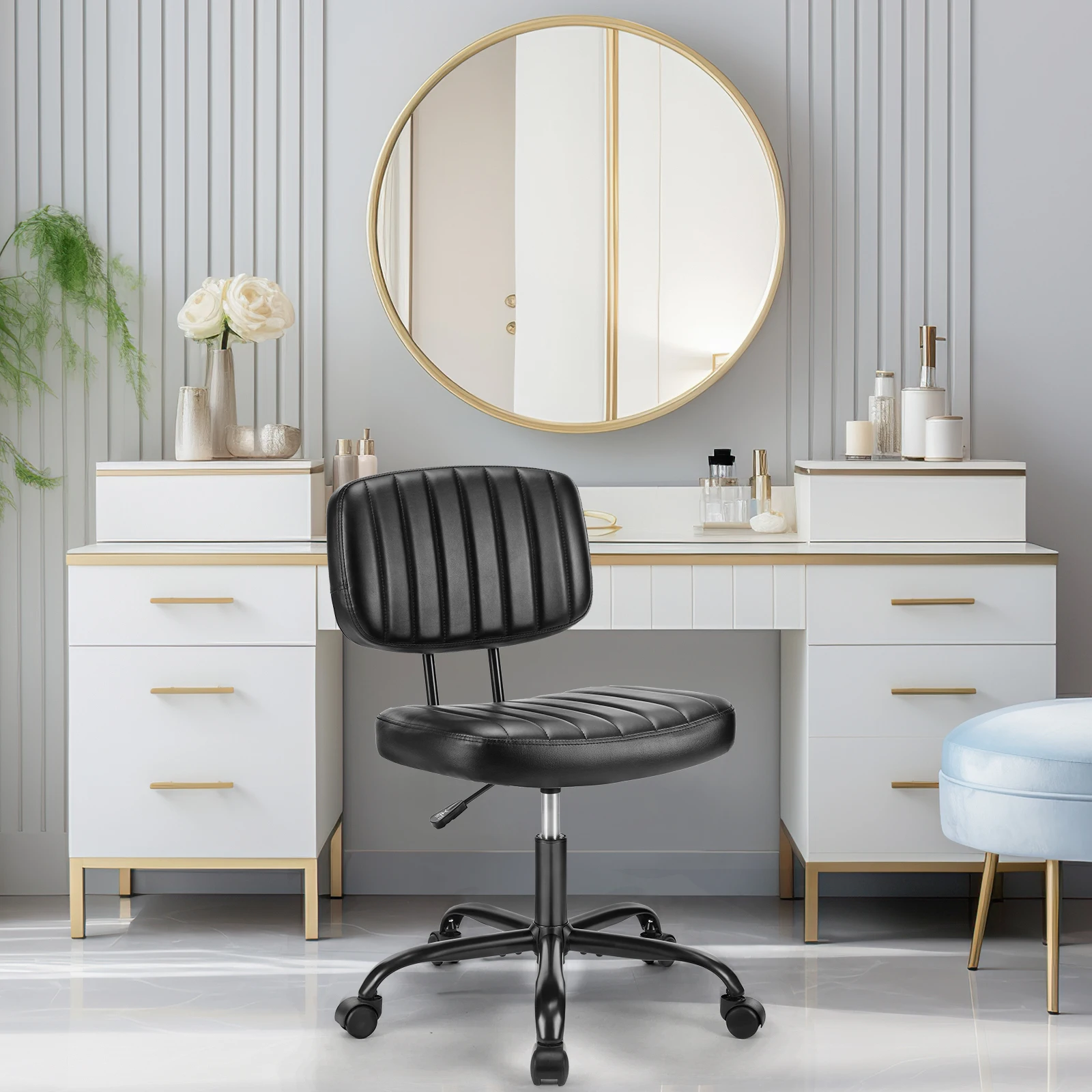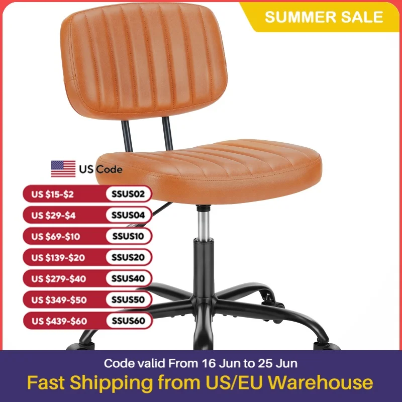 PREMIUM MATERIALS – This small office chair without an armrest is constructed with top-notch materials to guarantee maximum comfort and longevity. It features a high-density, thickened sponge cushion (2.5 inches), that provides exceptional comfort and resilience. The chair is upholstered with high-quality PU leather, ensuring both waterproof protection and breathability through its twill design.