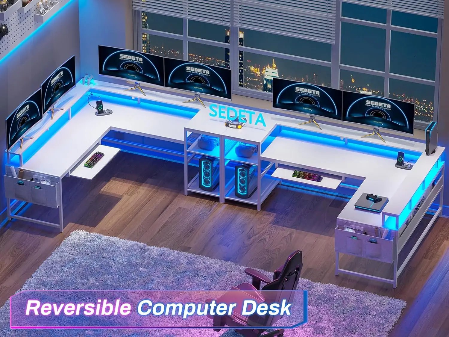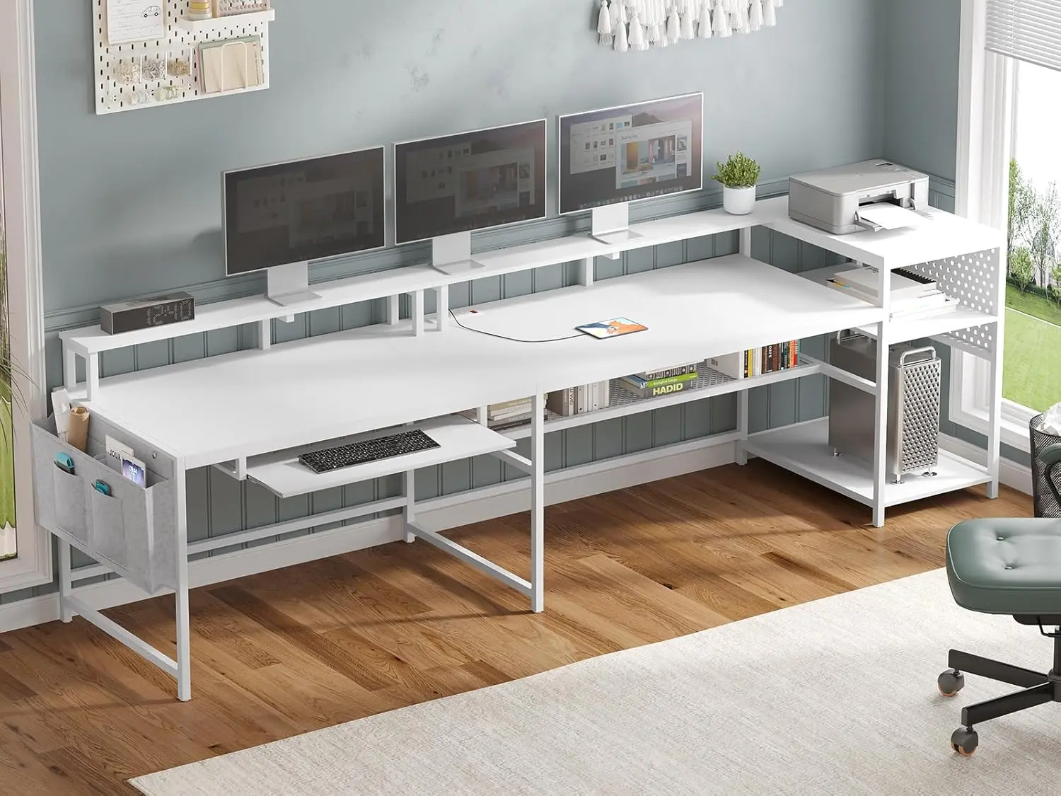 • 【Reversible Design】The l-shaped computer desk can change the into a long double desk as you need. The 96 inch – length size allows two person to work side by side without compromising on space. Double office desk is perfect for your friends, workmate and you to study, play games and work together. The 3-tier storage can place left or right as your needs.