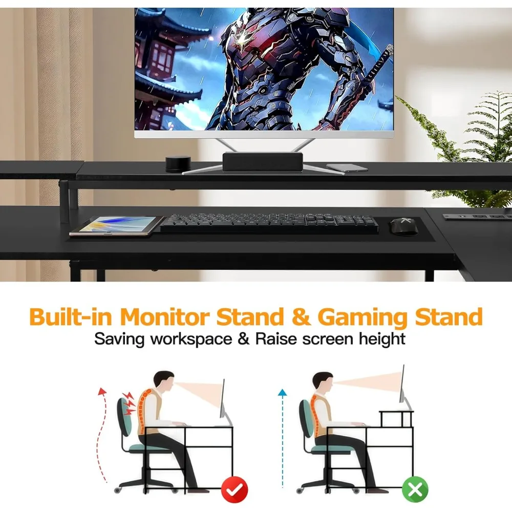 - Ergonomic Design: The L-shaped design provides a spacious work area, perfect for gaming or working. The desk is ergonomically designed to reduce strain on your body during long hours of use.