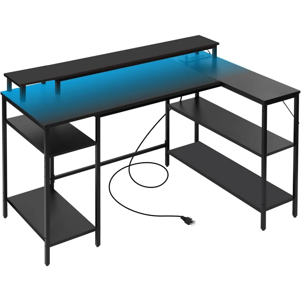 - Reversible L Shape Desk: With reversible design, this home office desk can be installed in 2 directions according to fit your space and needs. The tabletop stand and shelves provide extra storage space for your gaming accessories or office supplies.