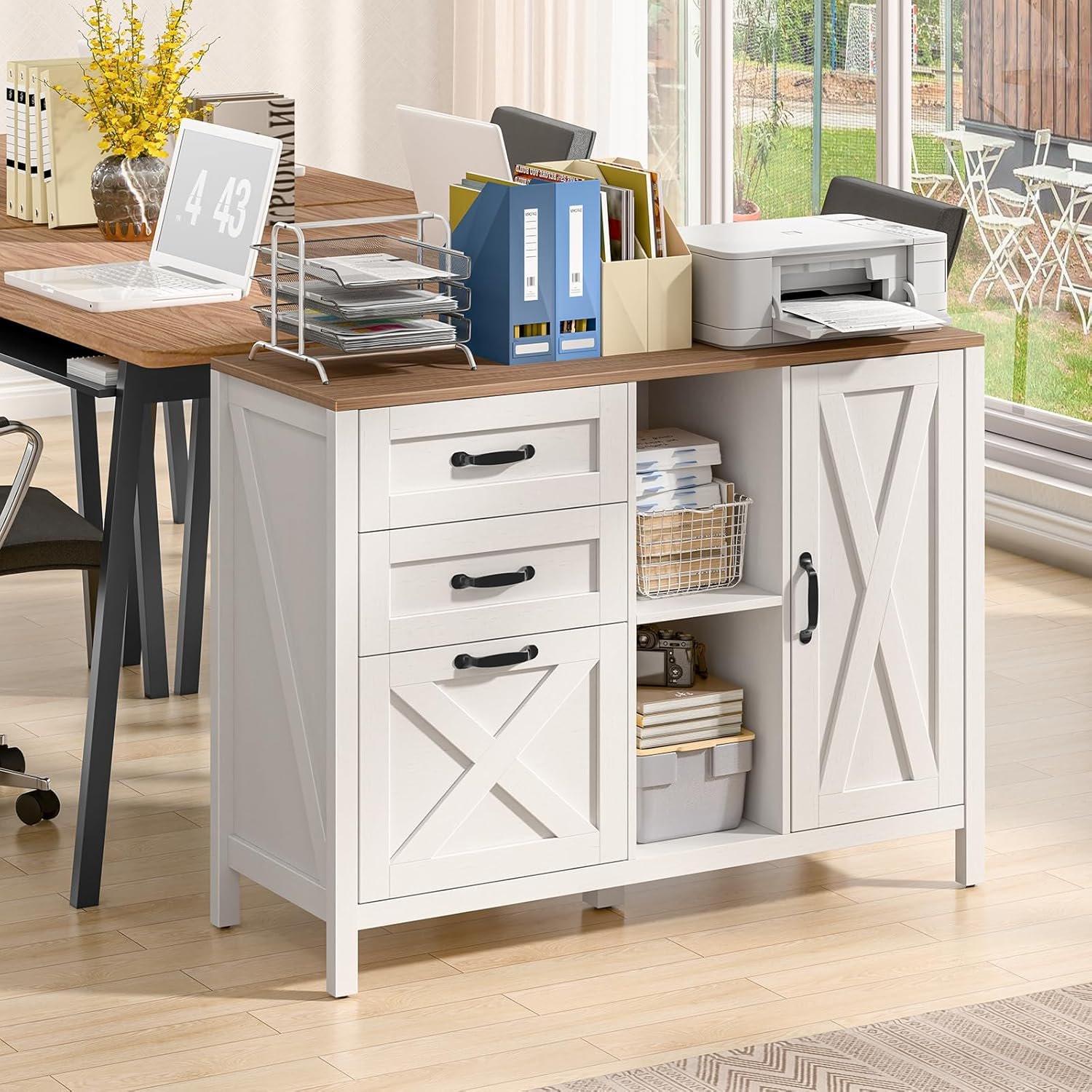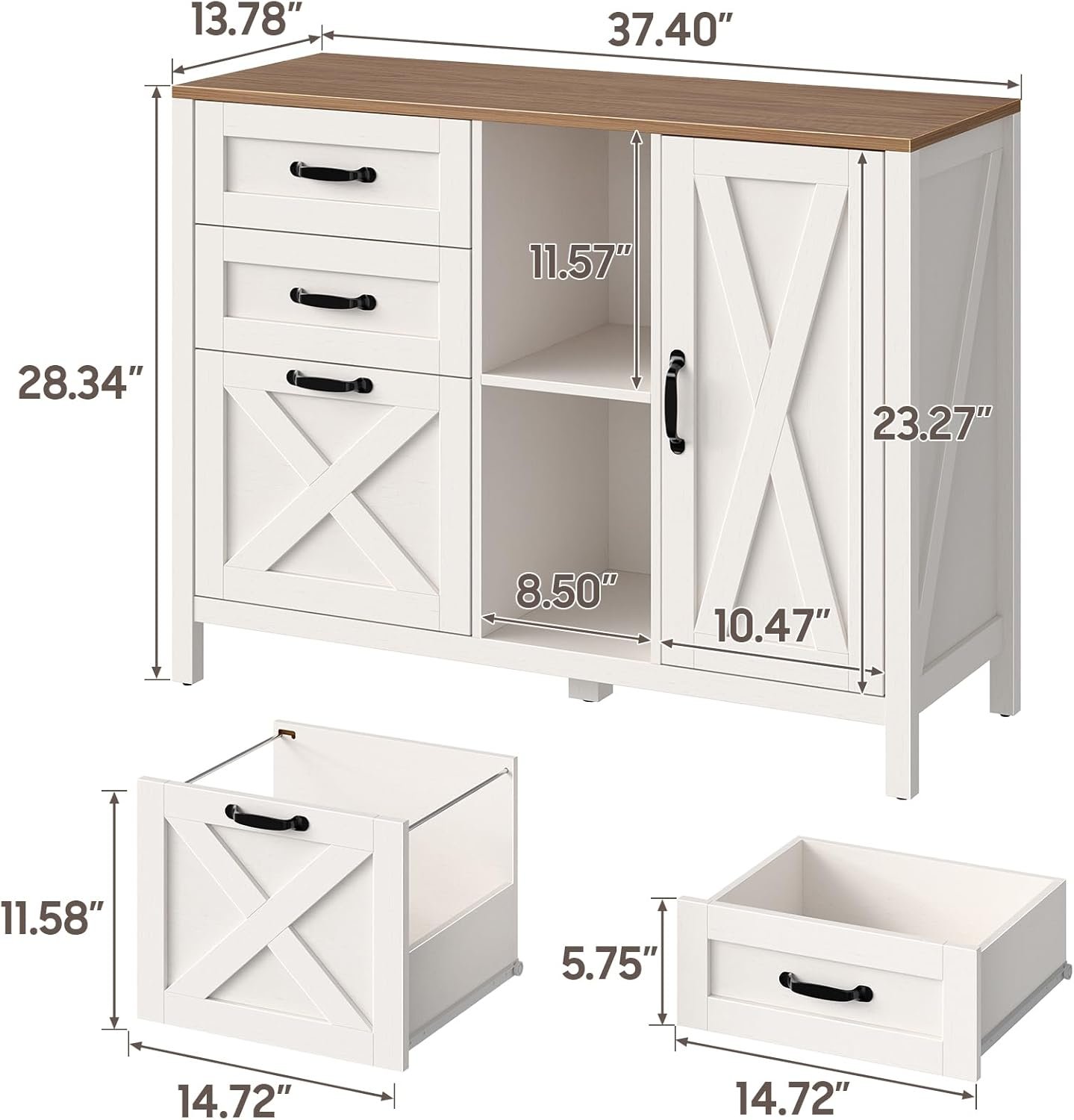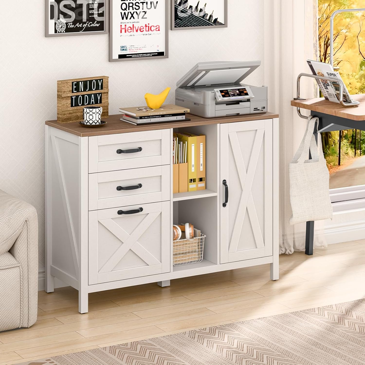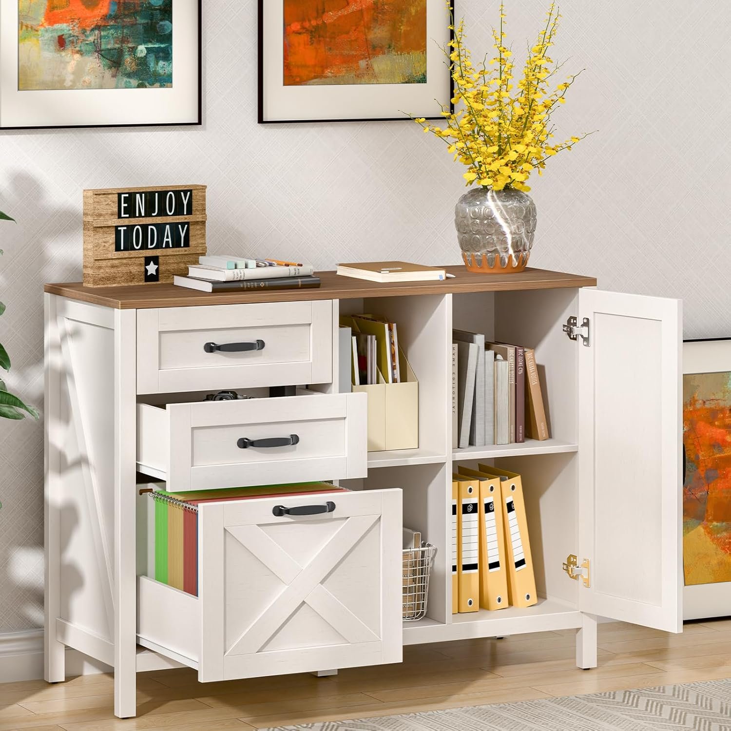 Versatile Farmhouse Lateral File Cabinet with 3 Drawers and Door
