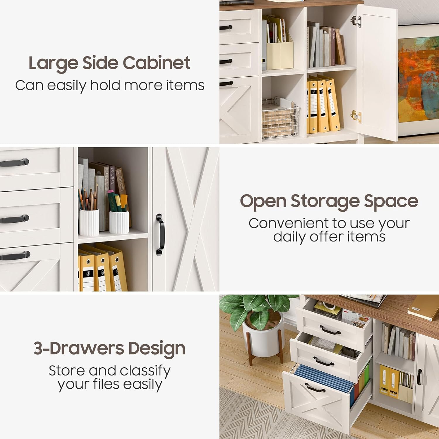 - Spacious Storage Space: 3 drawers, a large side cabinet and open storage shelves