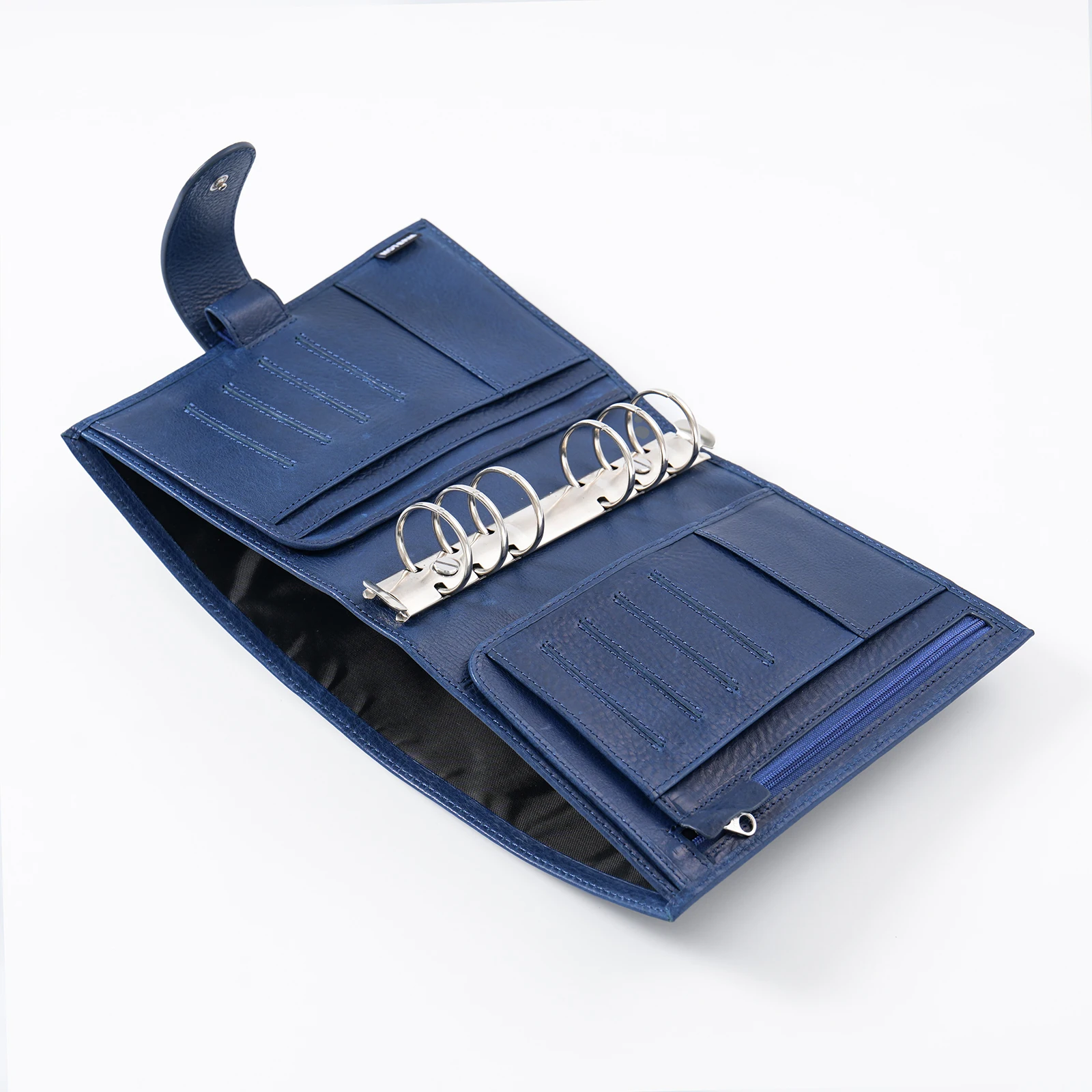 • Right: secretarial flap pocket, 2 slip pockets, 5 card pockets, outward elastic pen loop.