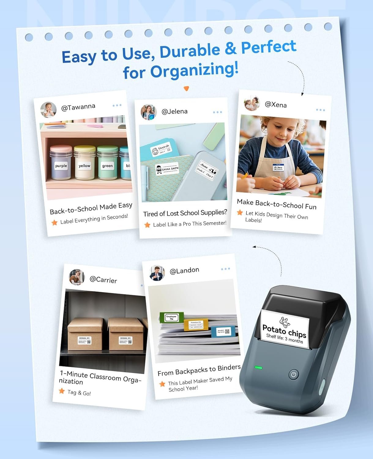 NIIMBOT B1 Label Maker Machine with Tape, Thermal Label Printer Easy to Use for Office, Home, Business, 2 Inch Label Maker with 2” x1.18” Labels-230pcs/Roll