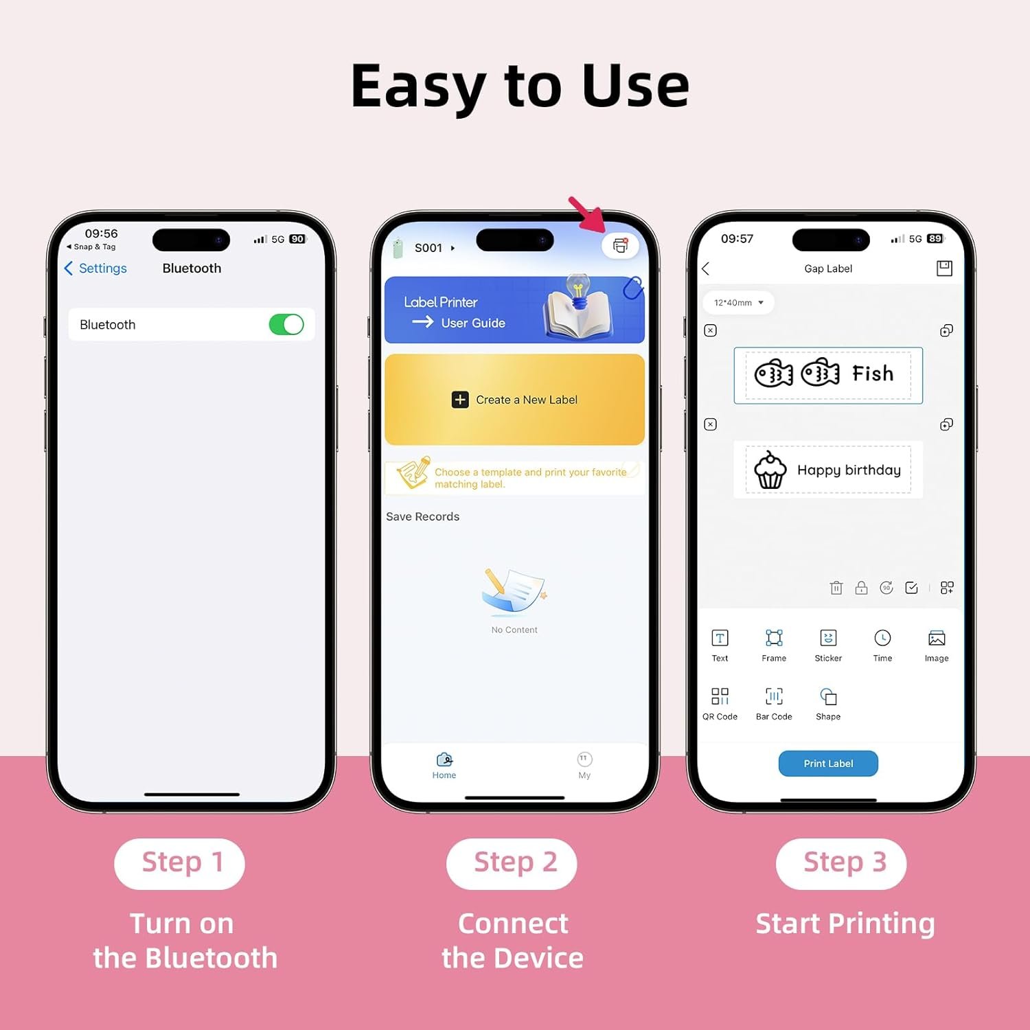 About this item Portable and Smart: This mini label printer features a compact design that fits easily into your pocket, print high-quality labels and stickers anytime, anywhere; The attached metal ring makes it easy to hang the printer in your bag or any convenient location High-Quality Printing: The ORGSTA label maker utilizes direct thermal printing technology and offers 203 DPI high-resolution printing, enjoy high-definition printing without the need for ink or toner; Laminated labels are clear, waterproof, oil-proof, scratch-resistant, and easy to tear, leaving no residue after removal Running on Great Power: This label maker machine can print up to 35 inches per minute (15 mm/s), allowing for quick and easy label creation; Equipped with a built-in durable 2000 mAh rechargeable battery, it offers long-lasting performance and extended standby time Multiple Creative Functions: The Snap & Tag app for this Bluetooth label maker provides various features and templates, easily create label stickers with text, QR codes, barcodes, materials, images, time, and borders; Customize label lengths with continuous tape, or use fixed-size labels for batch printing, featuring a built-in cutter for simple label cutting Wide Application: This label maker is ideal for both personal and professional use; At home, organize clothes, food storage, cosmetics, and mail; In the office, manage notebook tags, price tags, reminder tags, and other supplies; For schools, it helps teachers and students label classroom items, personal belongings, and name tags