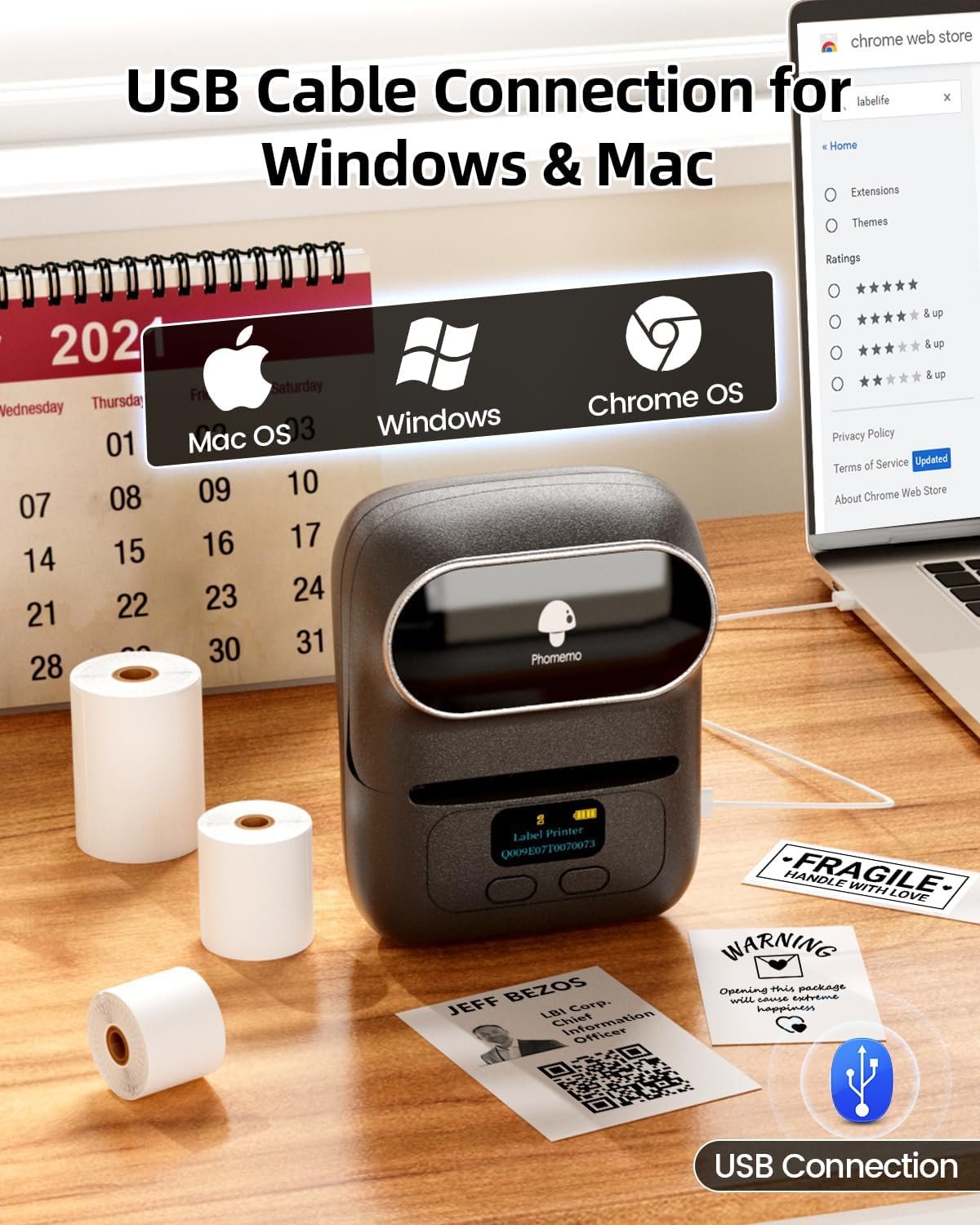 About this item User Friendly Label Maker-Bluetooth connection Via the app“Print master”. Hundreds of identical pre-cut labels can be printed repeatedly. Label width range: 20mm~50mm. Not for shipping labels What in the Package-1 M110 Label Maker, 1 40x30mm White Label, 1 50x30mm White Label, 1 50x80mm White Label, 1 Charging Cable Bluetooth Thermal Label Maker- Bluetooth 4.0 connection. Compatible with phones and tablets. Inkless printer is black and white print out, farewell handwritten labels Transparent Label Printing- M110 updated printe compatible with clear labels. 100+free Templates- Phomemo-M110 Bluetooth label maker machine with more than 100+ free label templates also can create your own templates. Edit and typeset labels freely. The Icons are updated regularly Multifunction Label Maker- M110 bluetooth mini label printer has wide uses in Clothing, Food, Telecommunications, Jewelry, School, Home Use, and so on