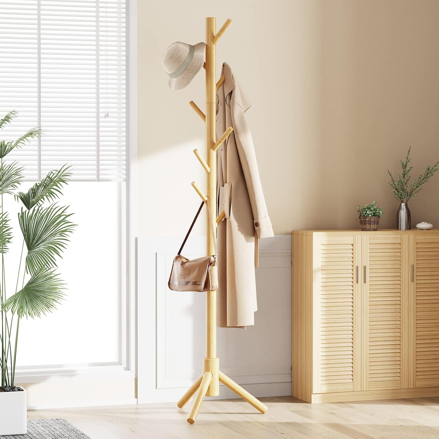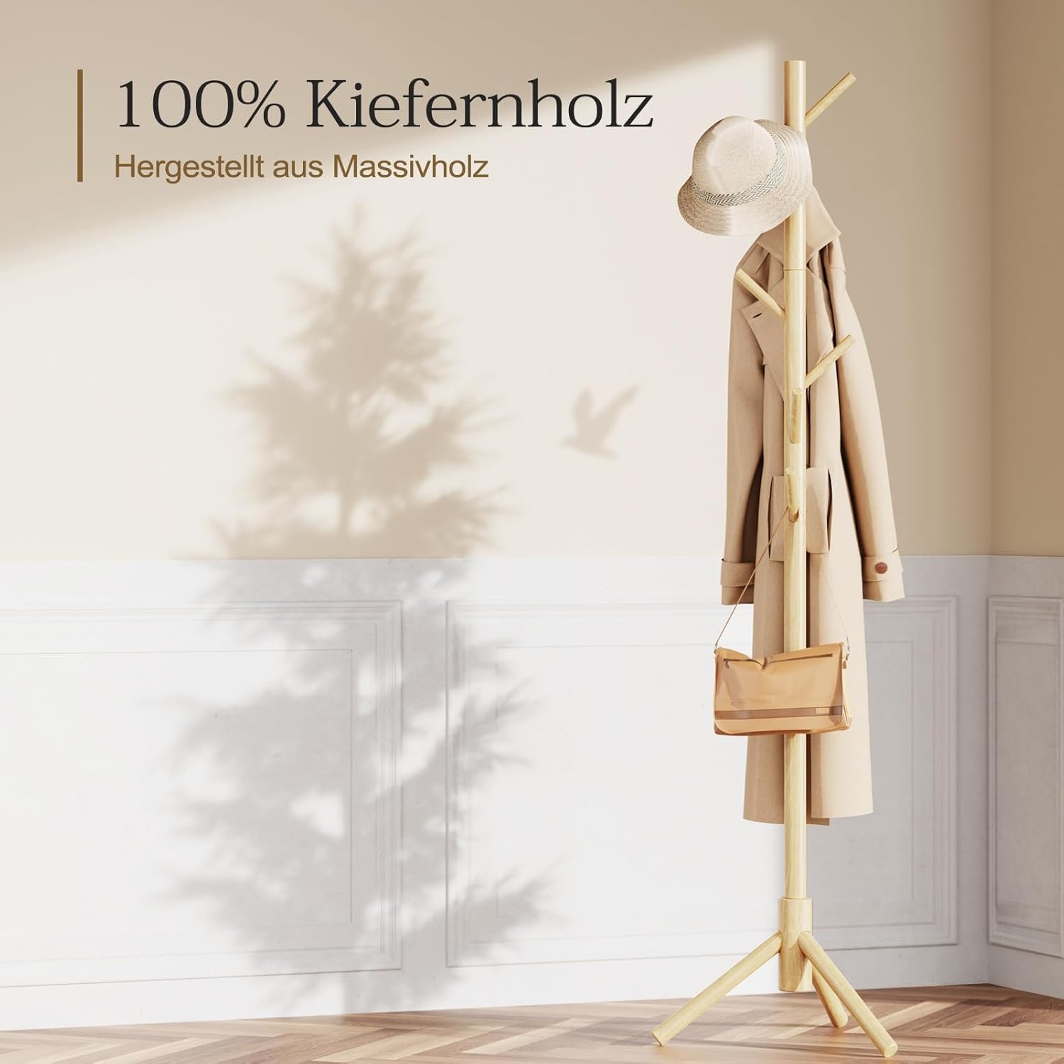 100% solid pinewood: Crafted from select, solid pine wood, this coat rack stand is built for durability.