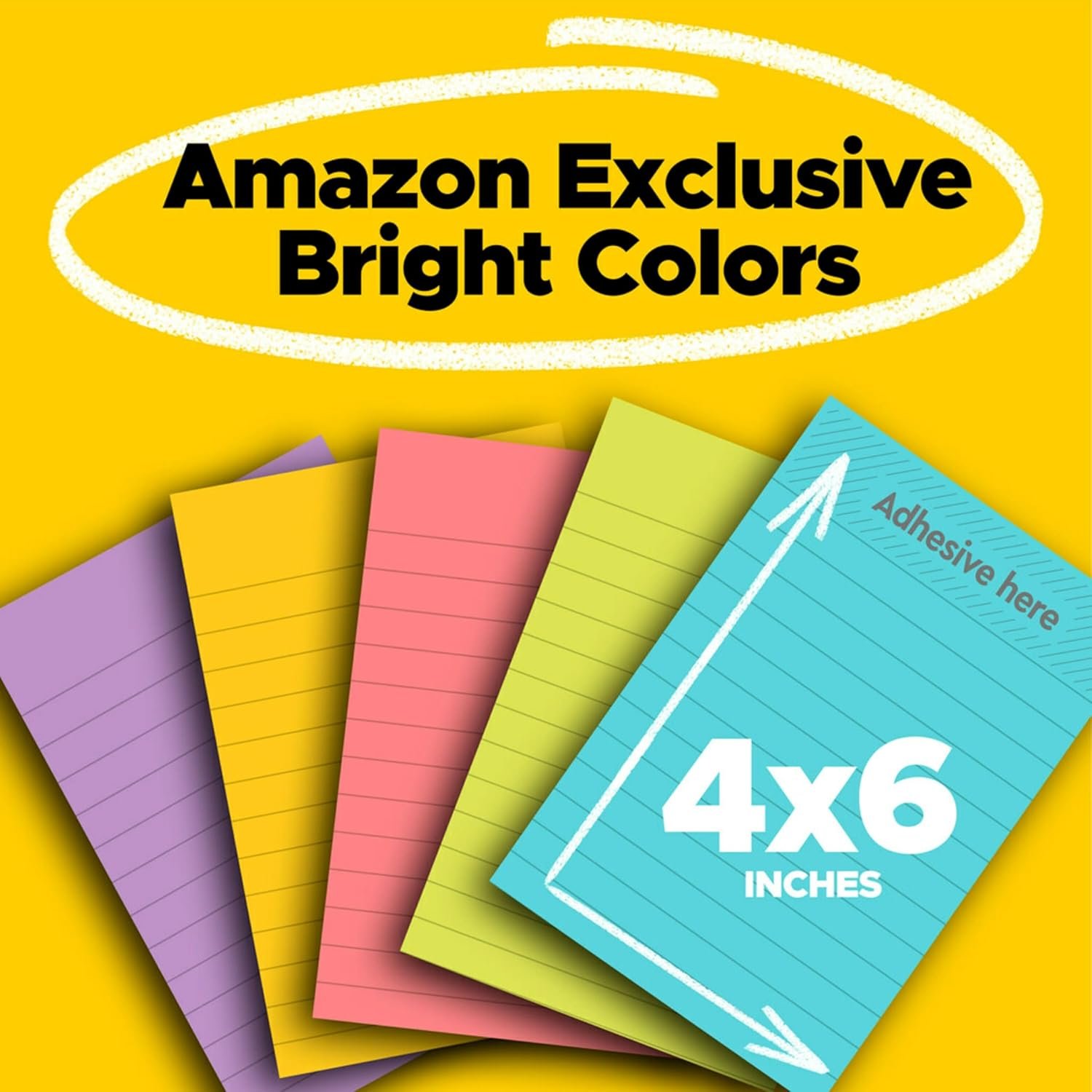 About this item GET ORGANIZED: Each pack includes 5 pads of 4 in. x 6 in. lined notes, with 90 sheets per pad, great for your office, work area, or classroom EXPERIENCE THE POWER OF 2X STICKINESS: Post-it Super Sticky Notes offer twice the sticking power of basic sticky notes, ensuring they stay put and won’t fall off STICK AND RESTICK ANYWHERE: These notes adhere firmly to walls, windows, doors, and other vertical surfaces, allowing you to move your reminders with ease VERSATILE AND ESSENTIAL: Post-it Super Sticky Notes are the perfect solution for shopping lists, reminders, to-do lists, color-coding, labeling, family chore reminders, brainstorming, storyboarding, and quick notes VARIOUS SIZES AND SHAPES: Available in different sizes, with or without lines, to cater to your specific needs EYE-CATCHING COLORS: Vibrant and colorful reminders are more likely to grab attention and be noticed BRIGHT COLORS: Energize your ideas with the exciting colors of Aqua Splash, Acid Lime, Sunnyside, Guava, Iris Infusion