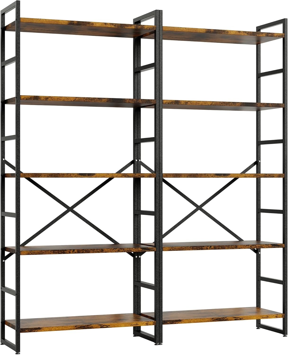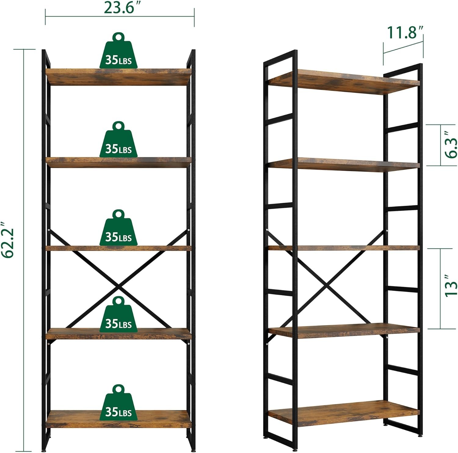 About this item Metal Set of 2 5-Tier Multifunctional Bookcase Shelf: This 2 5-Tier shelf bookshelf provides a very wide storage space, you can use it to place all kinds of items as you see fit. Books, photo albums, crafts, potted plants and etc. Beautiful bookshelf panel with waterproof and anti-scratch features, very easy to clean. The board size: 22.5″L x 11.8″W. High-Quality Metal Frame Bookcase:Constructed by premium metal and selected particle board, the contemporary metal bookcase is solid, stable, sturdy, and durable. With top notch anti-rust coating, the whole shelf looks more sophisticated. With an excellent metal frame and thick solid panel, each panel of the bookcase can hold up to 35 lbs. Because of the fixed rod assembly, the industrial shelf has strong stability and can perfectly protect your items. No shaking No wobbling. Modern Industrial Style Display Shelf:This home bookshelf perfectly combines the hard steel with the relic particle board, simple, sturdy, and functional. You can put it in your living room, study room, bedroom, and office. Choose Shintenchi Bookcase, make your space neat, tidy, and also in great style. 35 lbs/tier Capacity:Specially designed metal sidebars and X-shaped rod on the back leads to better stability and resistance. Each shelf can bear 35 lbs. Easy Assembly & Clean: Our package come wif detail instruction and all tool required for assembly needed, lets you assemble this in just minutes; It won’t get dirty easily and if so, you can just use a damp cloth to maintain.