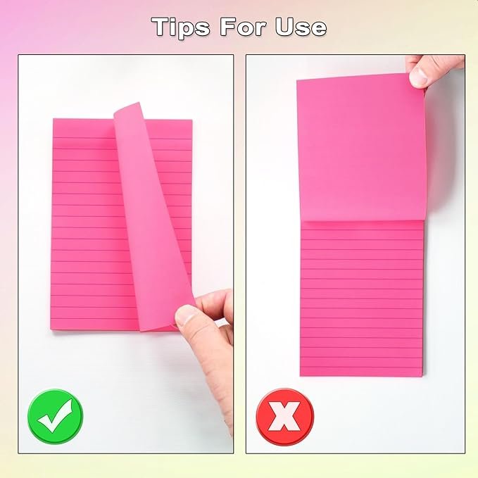 - Thick Paper: Lined sticky notes made with 80 GSM thicker paper, flat sticky notes are strong, stay on any surface without curling. Smooth writing, No ink-seepage. accommodates pens, pencils, markers, and other writing tools