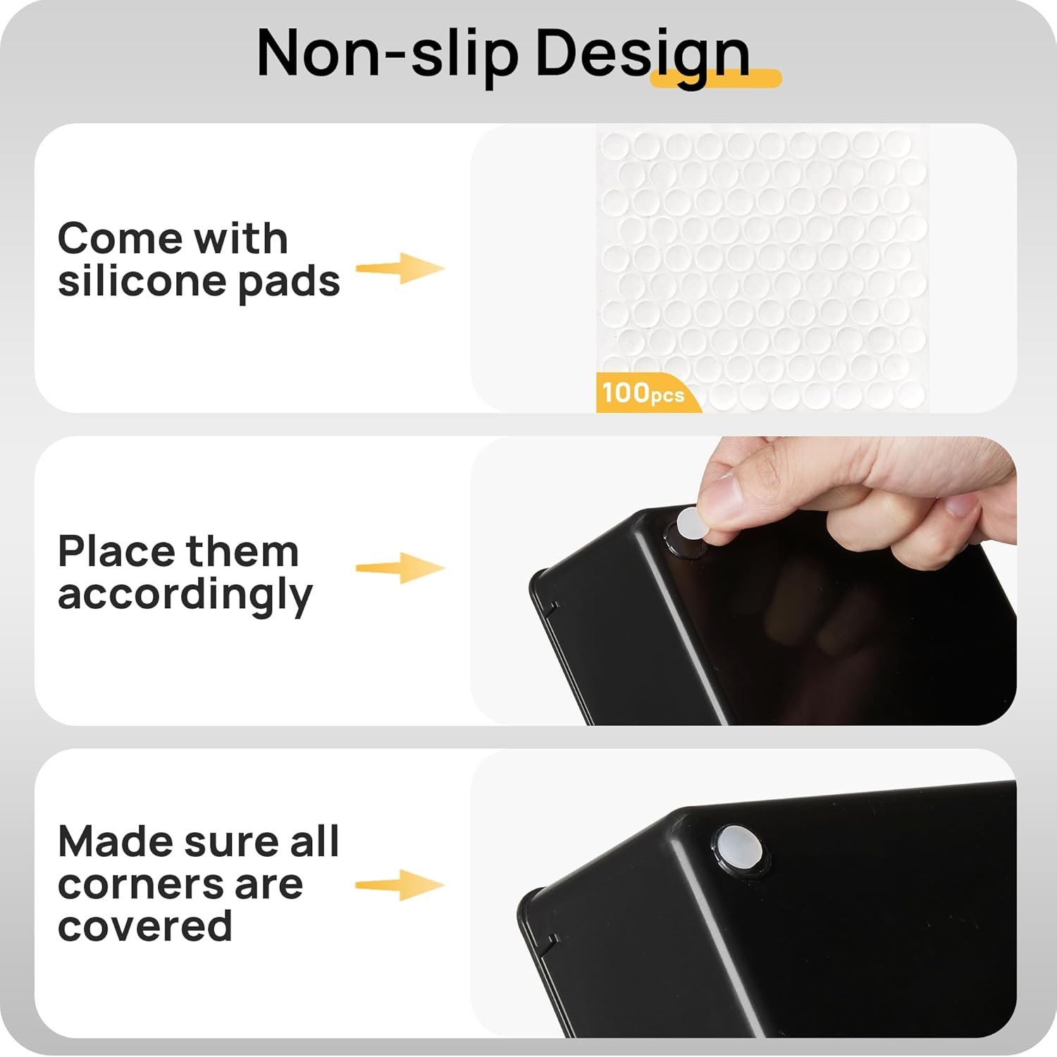 About this item 【Make Everything Organized】These clear versatile drawer dividers trays are perfect for any place in your home. Fit all kinds of drawers, such as vanity / bathroom / kitchen / office drawers/ craft room, ideal for organizing cosmetics, makeup tools, hair accessories, jewelry, pins, office supply, craft supplies, utensils, etc. 【Combination of 4 Different Sizes】One set includes 25pcs storage bins in 4 different sizes, which help you customize combinations to store items and organize drawer in shelf/ closet/ cabinet/ dresser . Includes: 9 x 6 x 2 inches (3pcs), 9 x 3x 2 inches(6pcs), 6 x 3 x 2 inches(8pcs), 3 x 3 x 2 inches(8cps). 【Non-Slip and Durable】Extra 200pcs silicone pads are included, just stick them on the bottom of the plastic trays for non-slip. Made of durable and clear plastic, so you can see what’s in it without digging around or making a mess, help you get a neat lifestyle. 【Stackable Storage】The drawer bins can be stacked into one other when you not use them, that will save much space and organize well. You will find it’s so easy to keep things neat and tidy. 【Easy to Clean】Our desk drawer storage bins are easy to be wiped clean with a damp cloth and perfect for keeping everything in its place. Convenient for use in your daily life, make everything look beautiful and better organized.